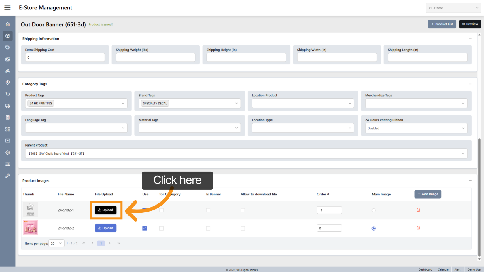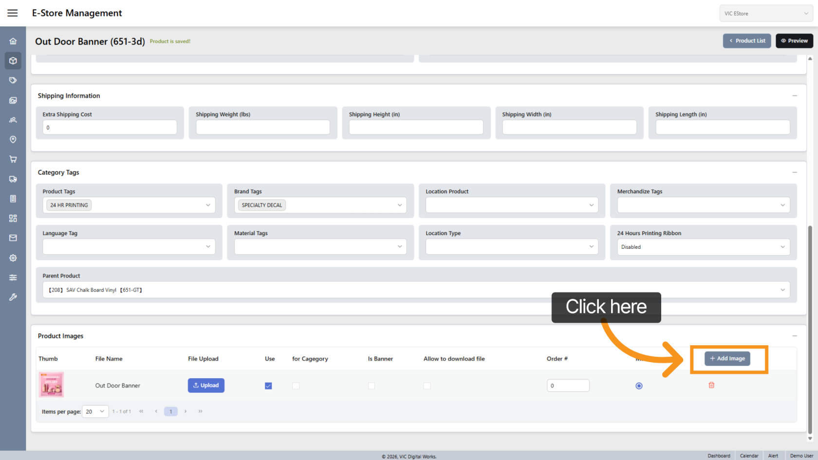 Click Add Image to add a new product image.