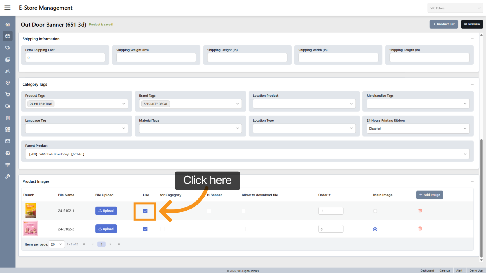 Check Use to display the image in your store.