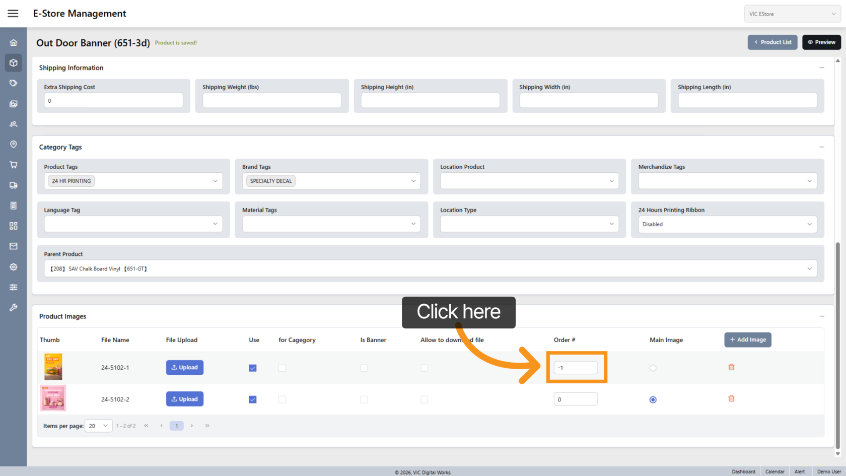 The system automatically assigns image order, but you can rearrange the order if needed.