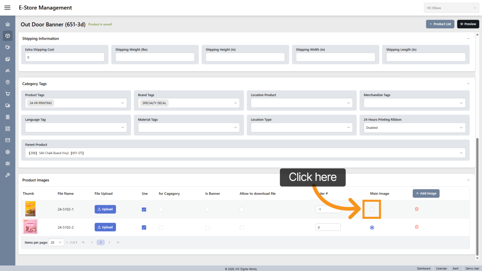 Select Main Image to display that image as the primary product image.