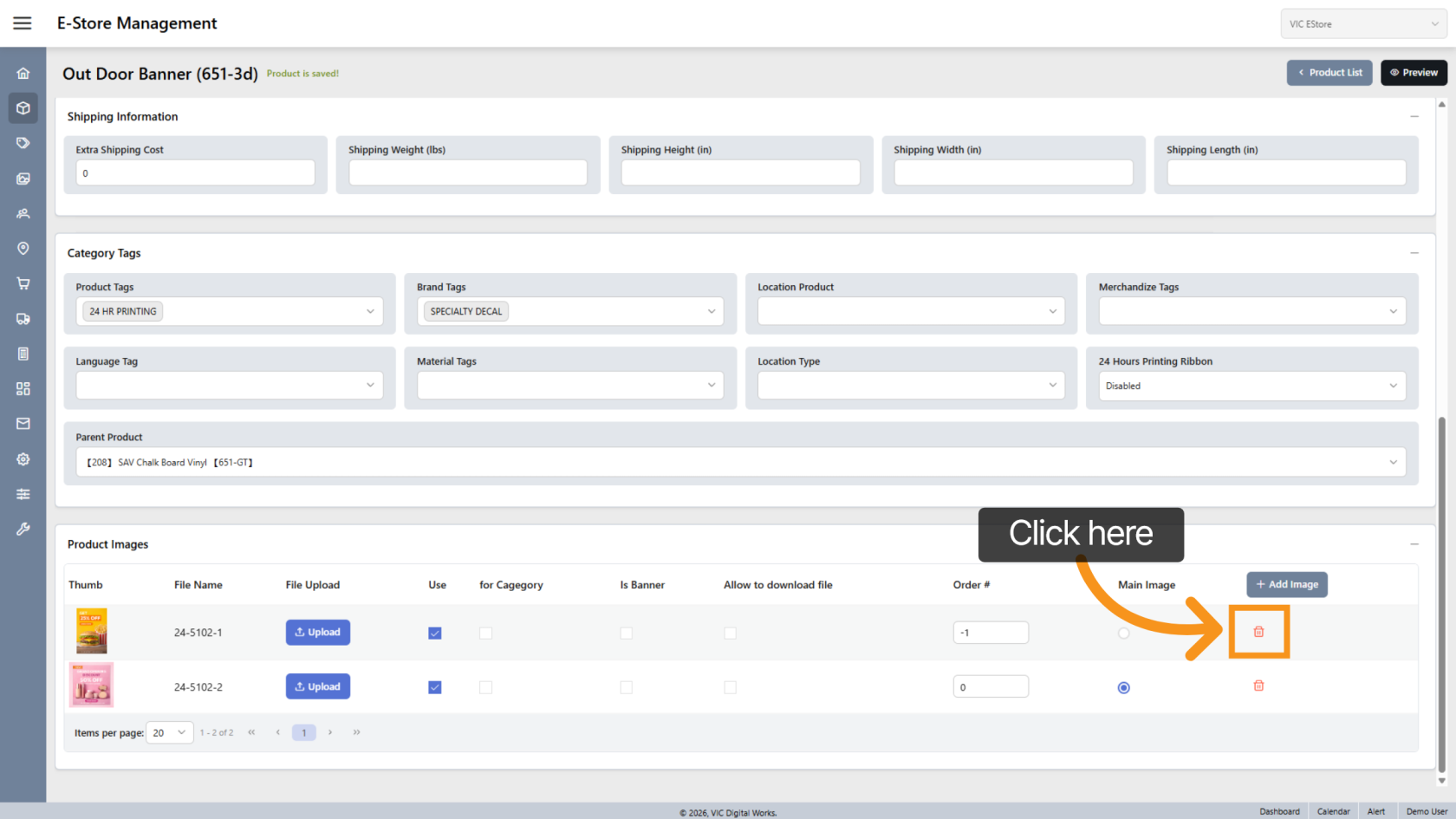 Click the delete-icon.png delete icon to remove an image.