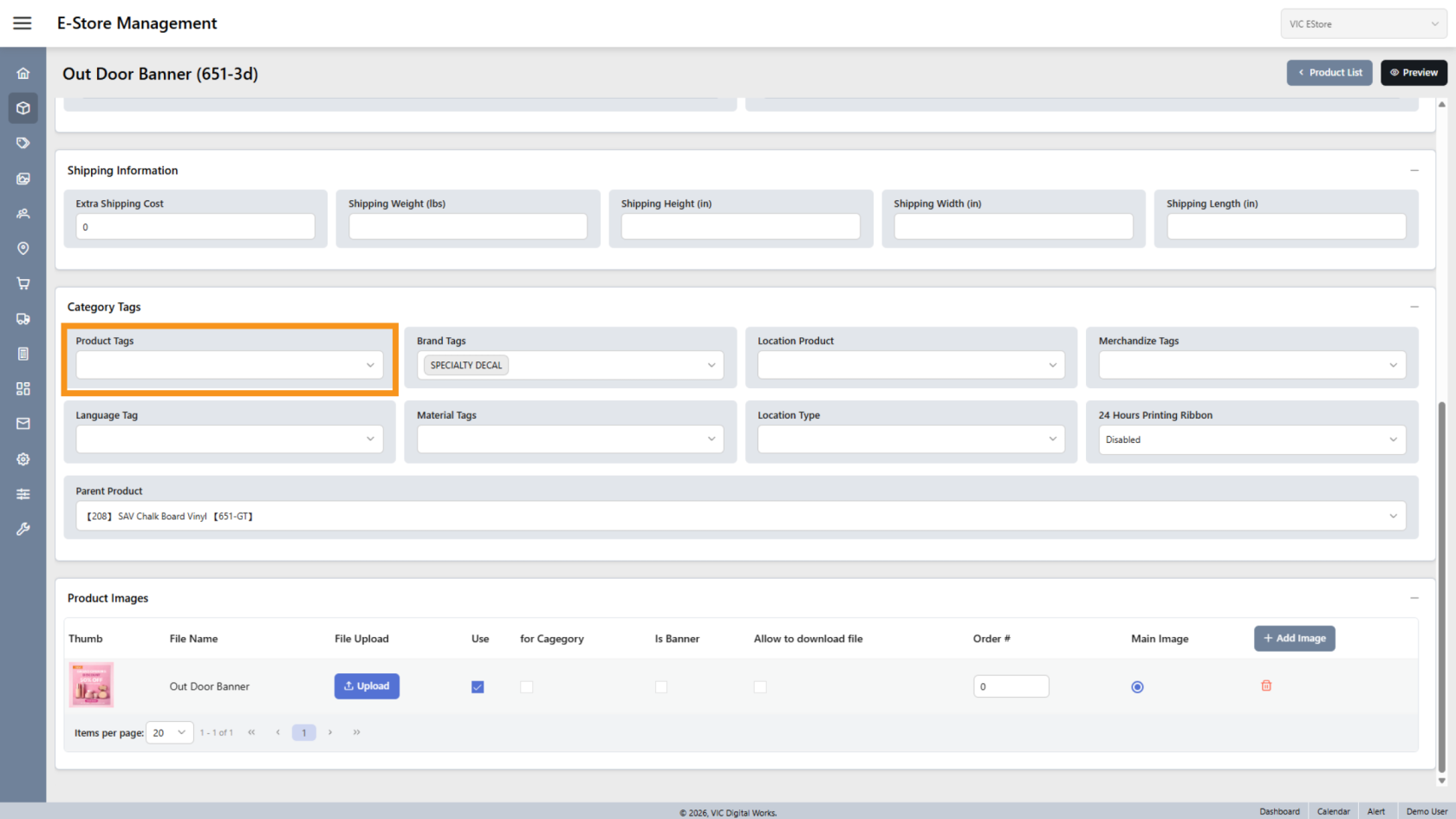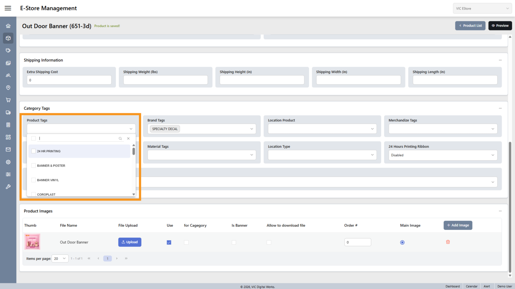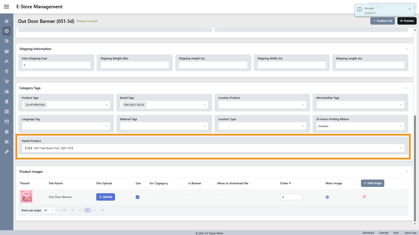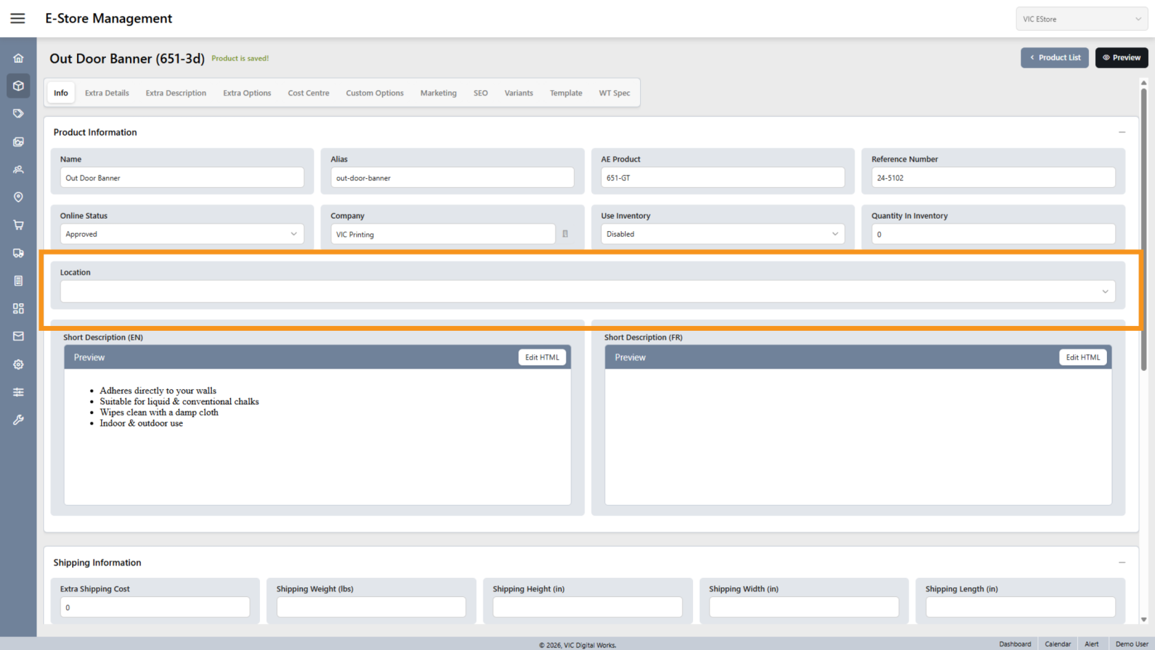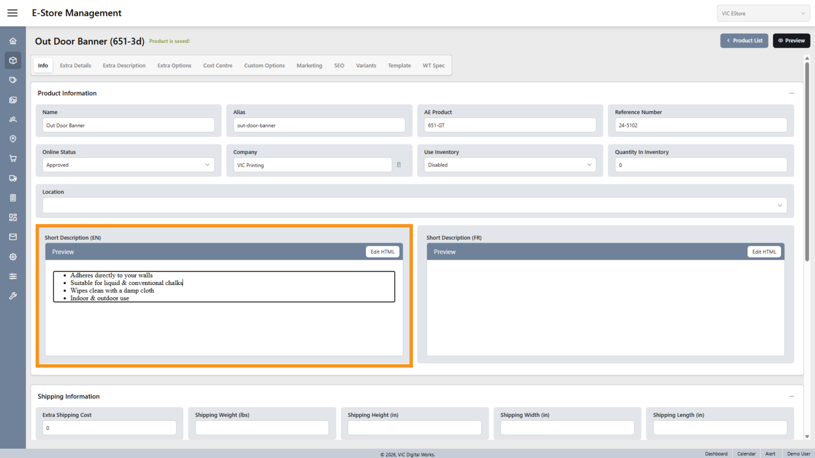 You have successfully configured and updated product information in the E-Store.