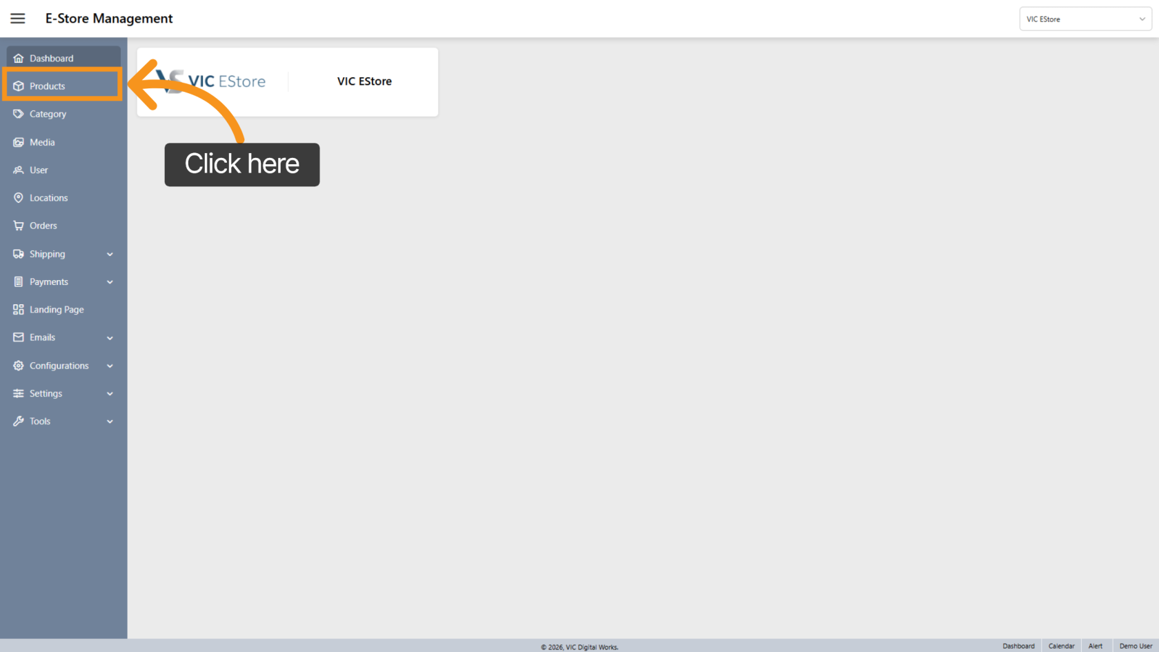 From the side menu, click Products to open the product list in the E-Store system.