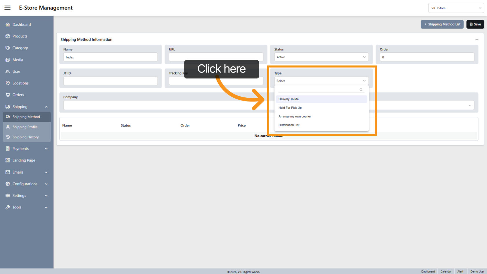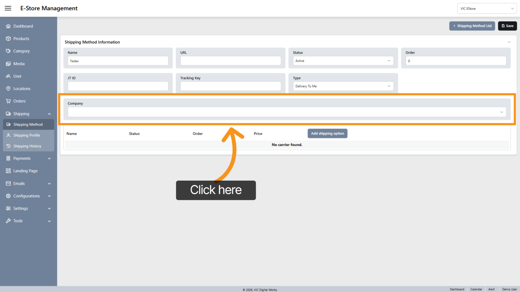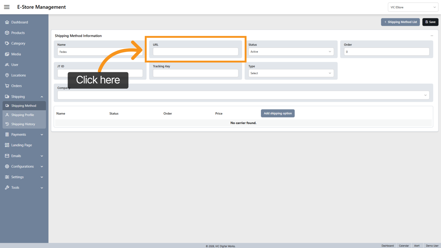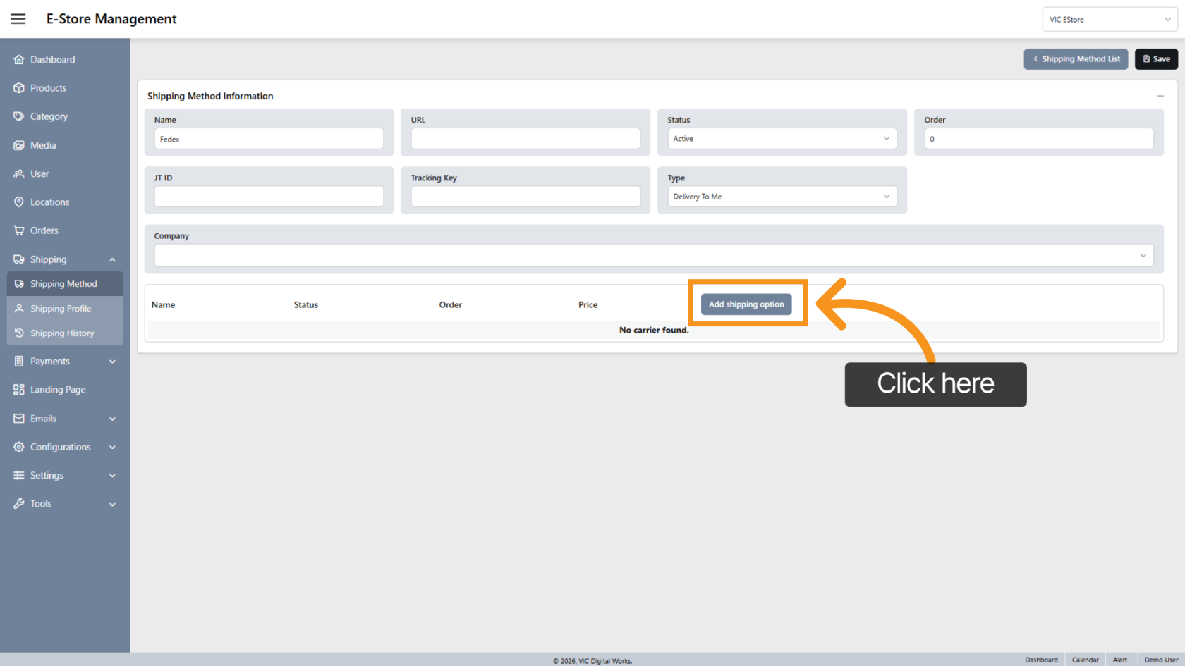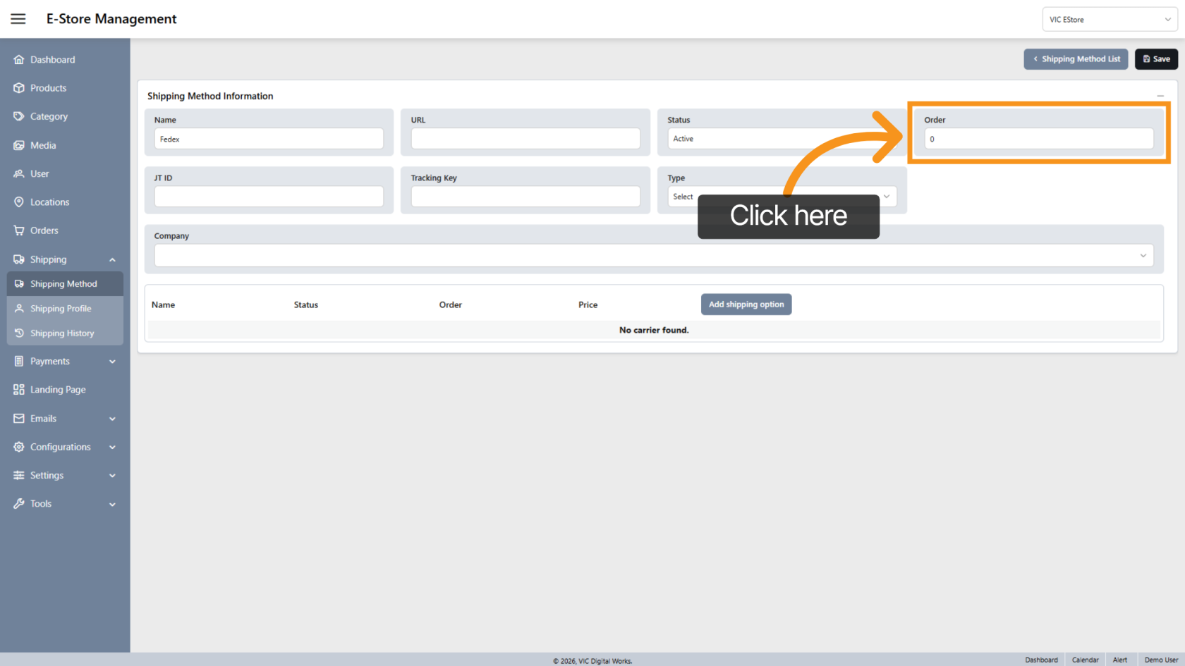 Click "Shipping Method" from the side menu to access the shipping management interface.