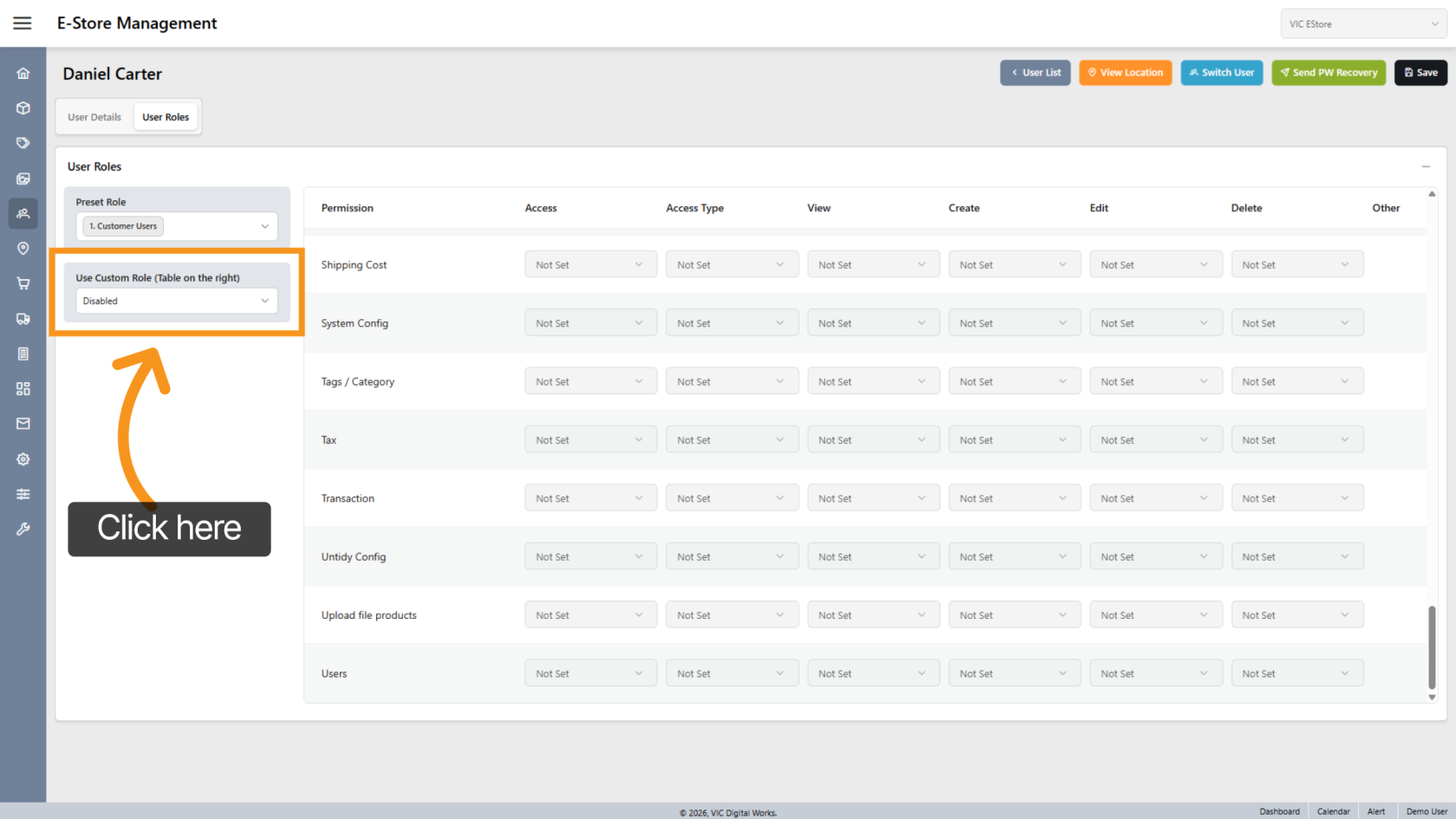 Enable Custom Role to define specific permissions manually.