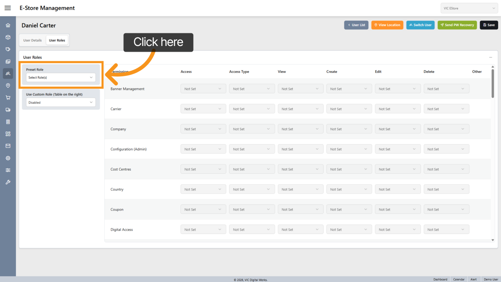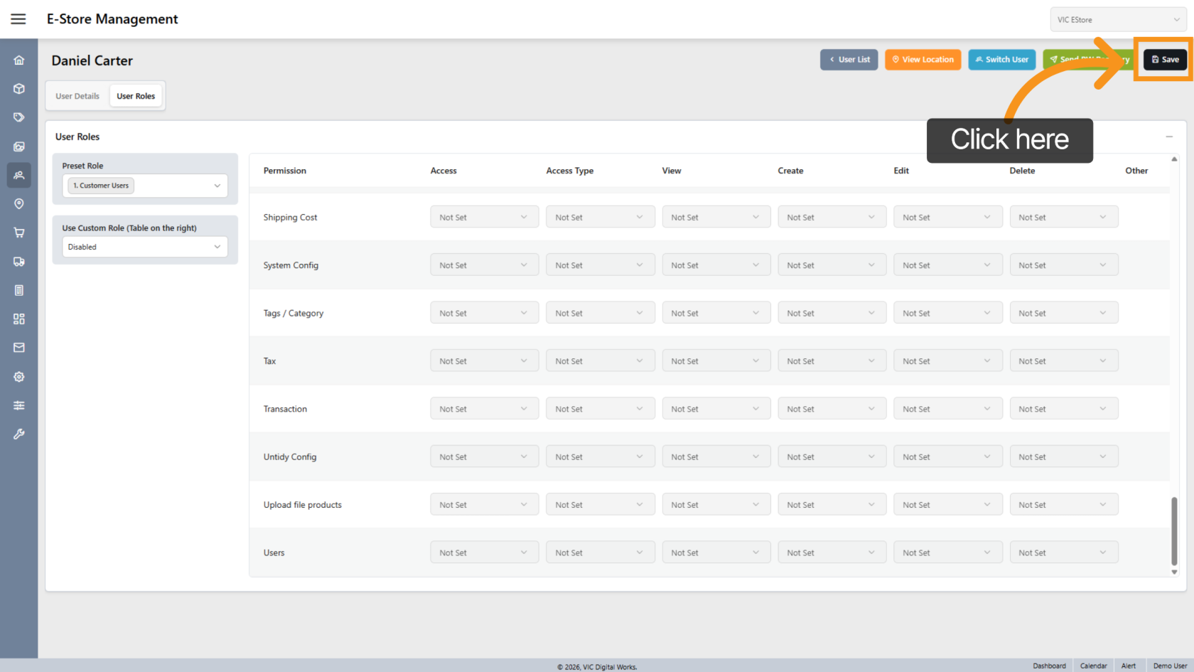Click "User Roles" to configure permissions.