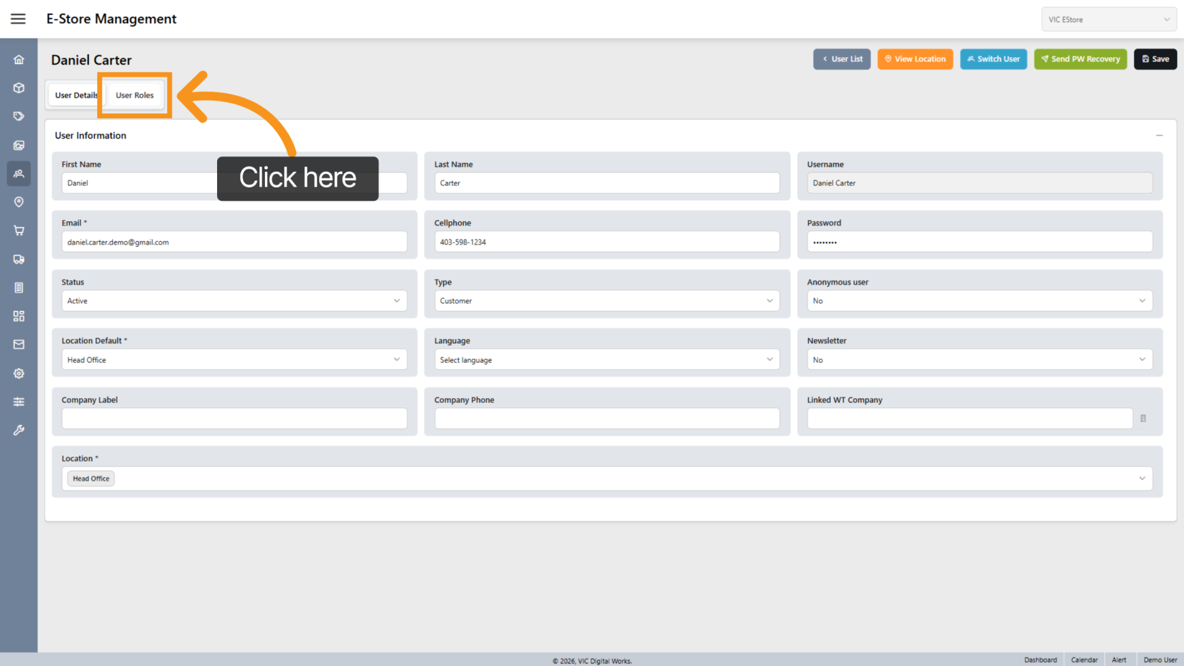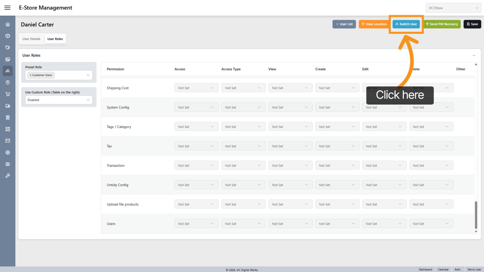 Click "Switch User" to view the store from the new user’s perspective.