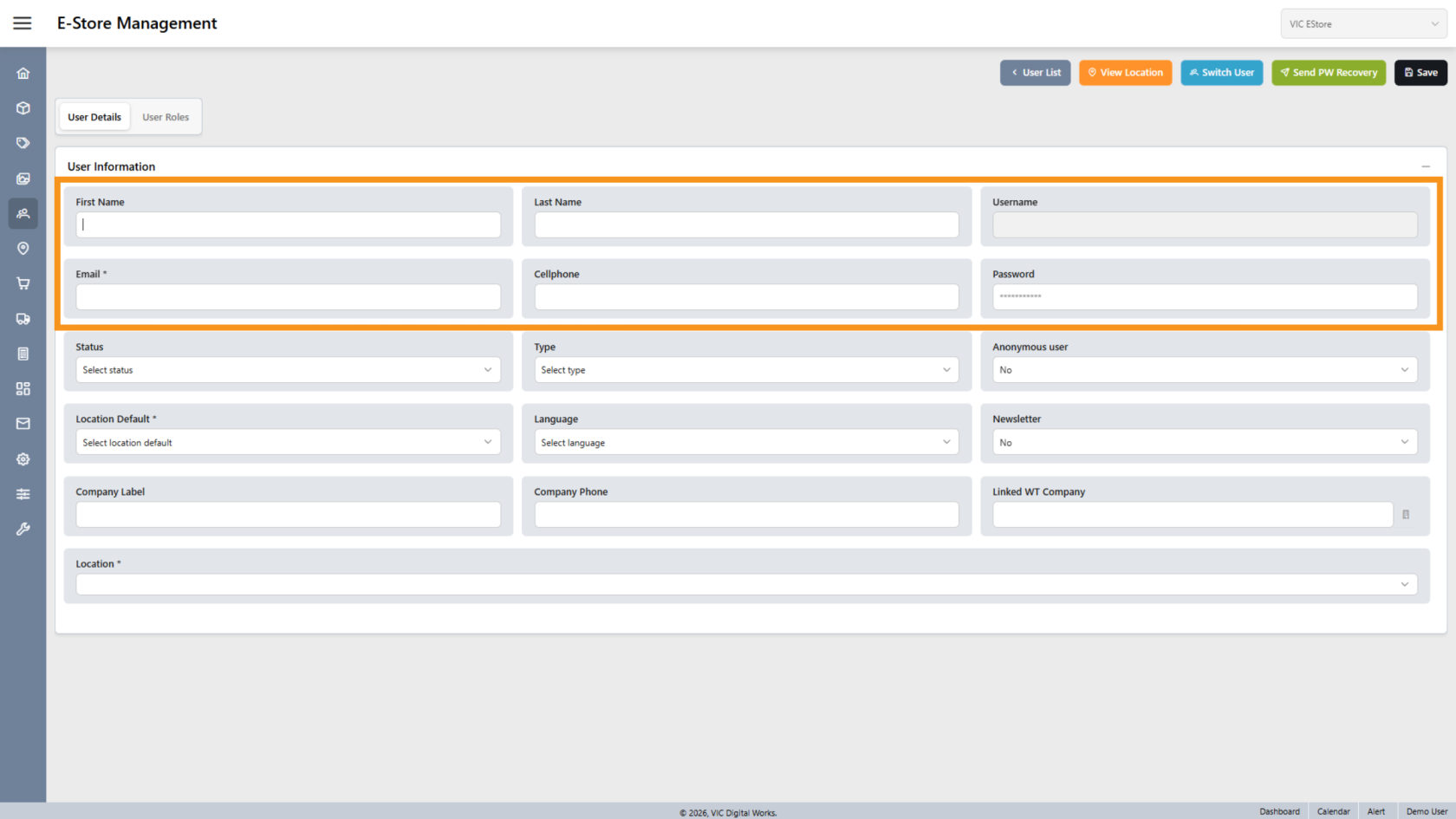 4. Enter User Information