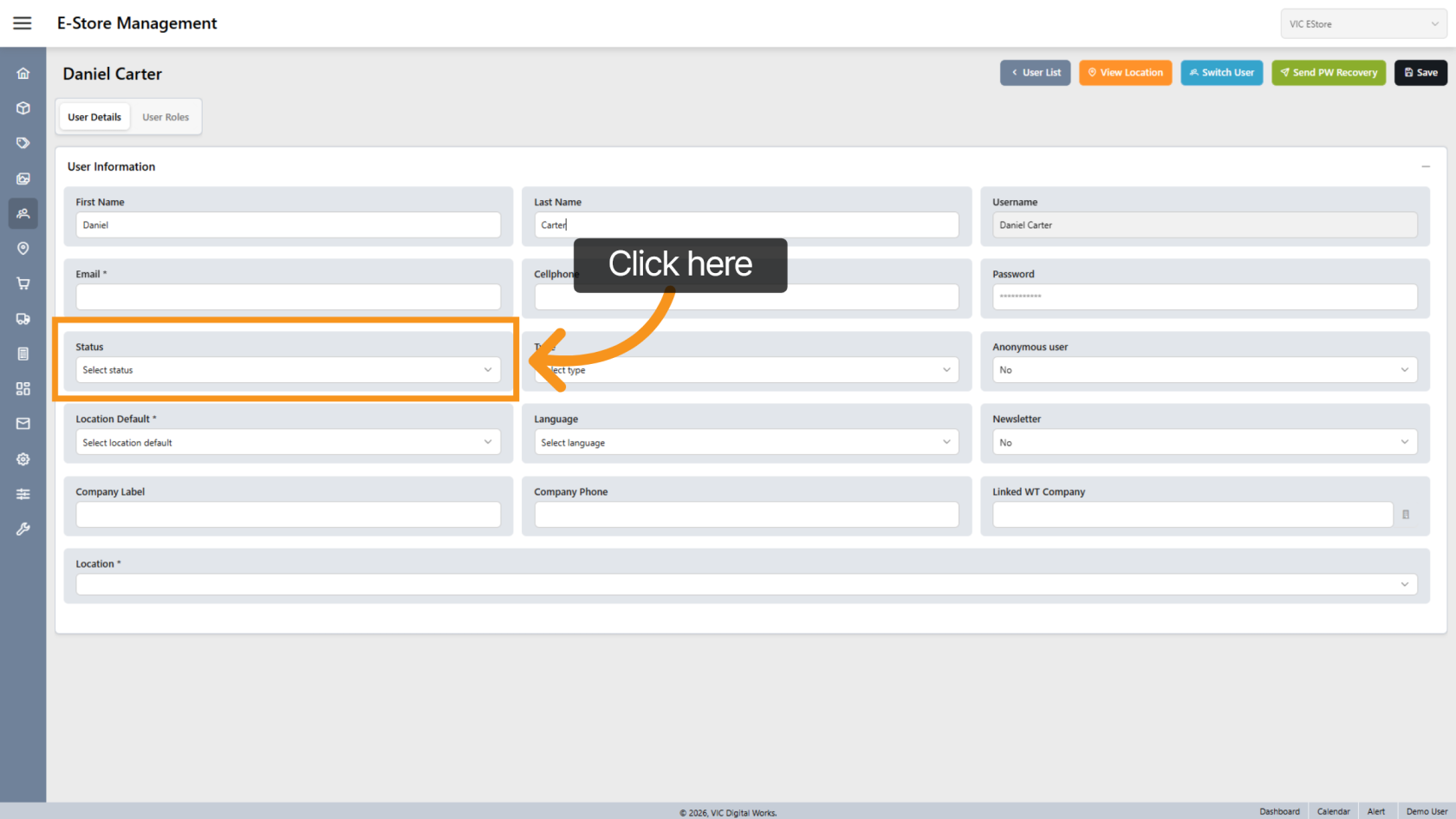 Change the status to Active to allow the user to log in.