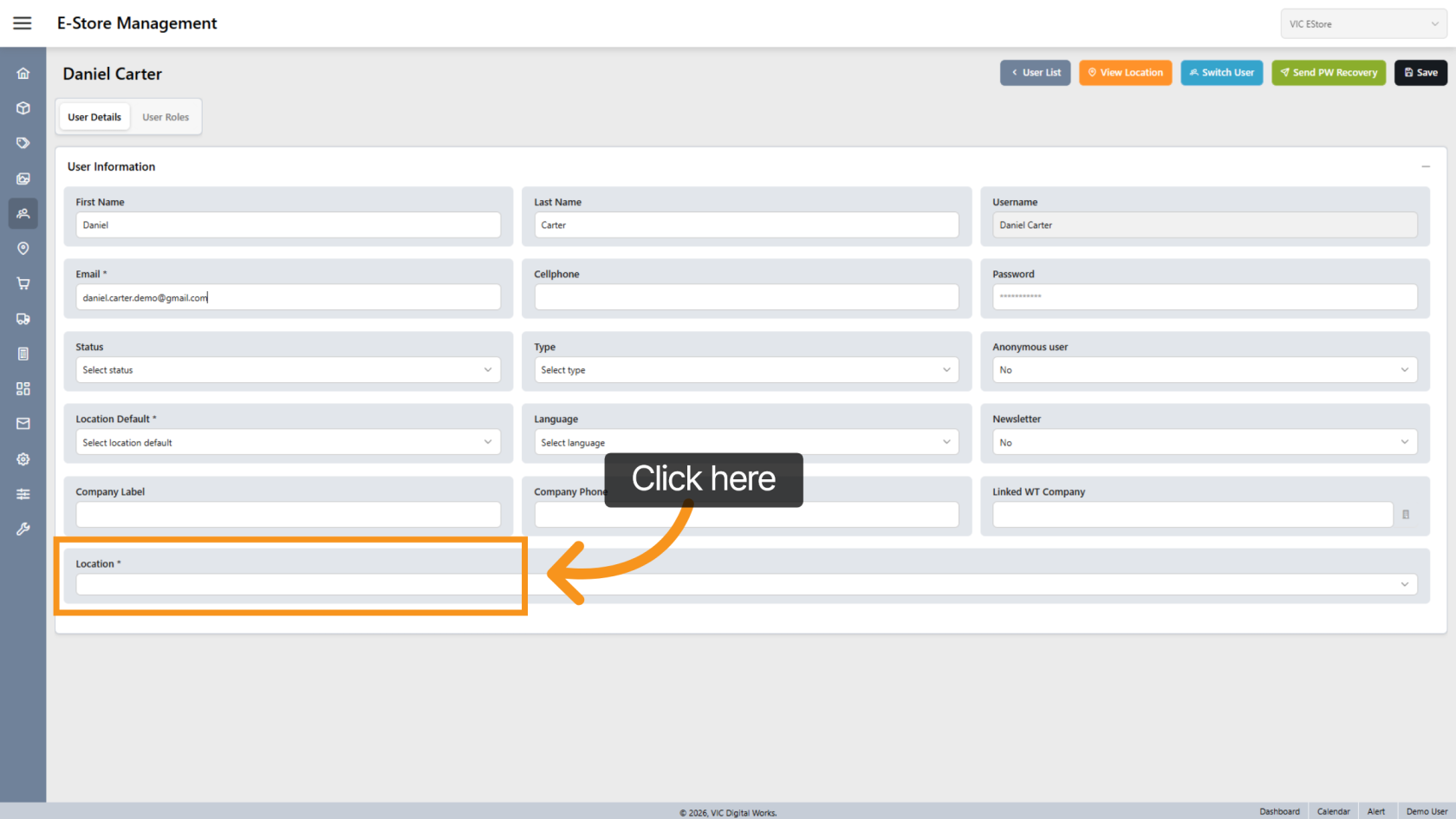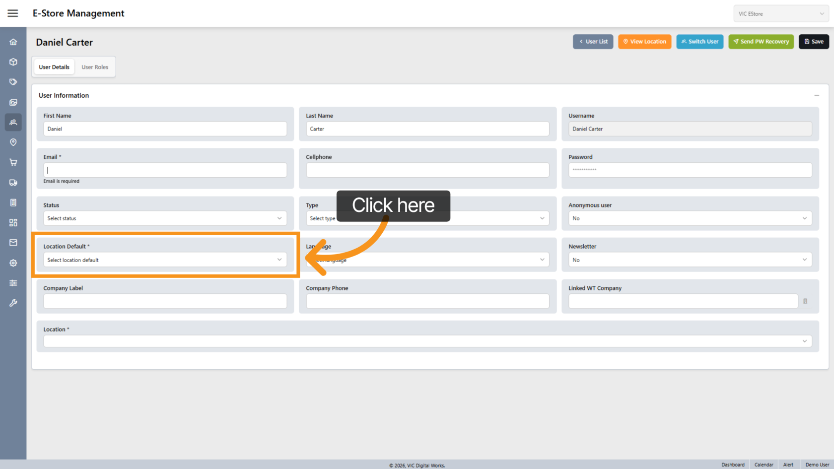 Assign a default location for the user.