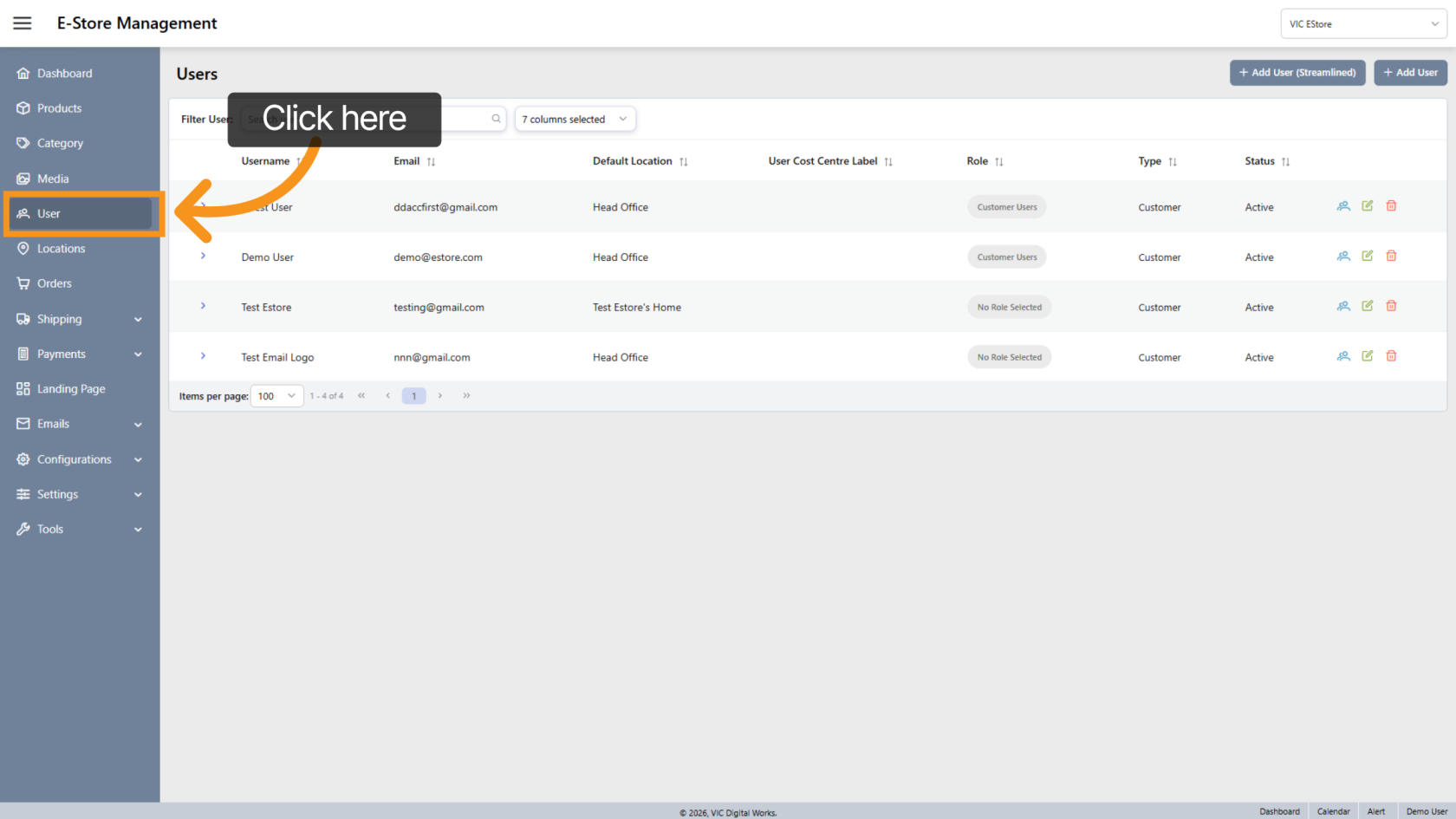 1. Open User Section