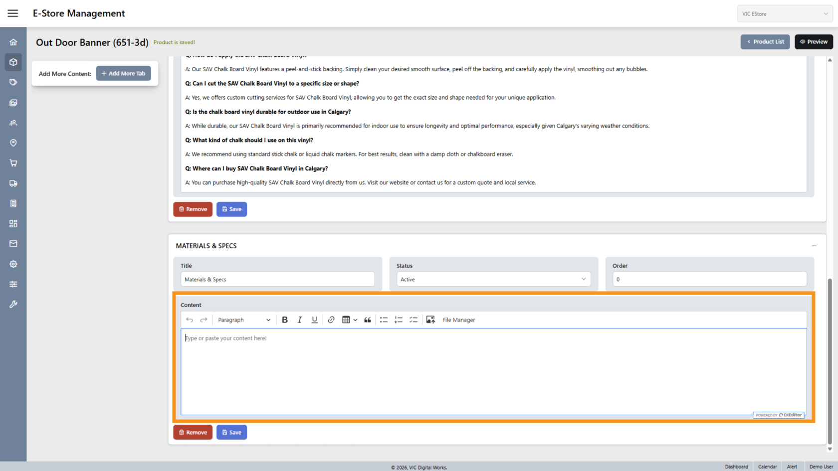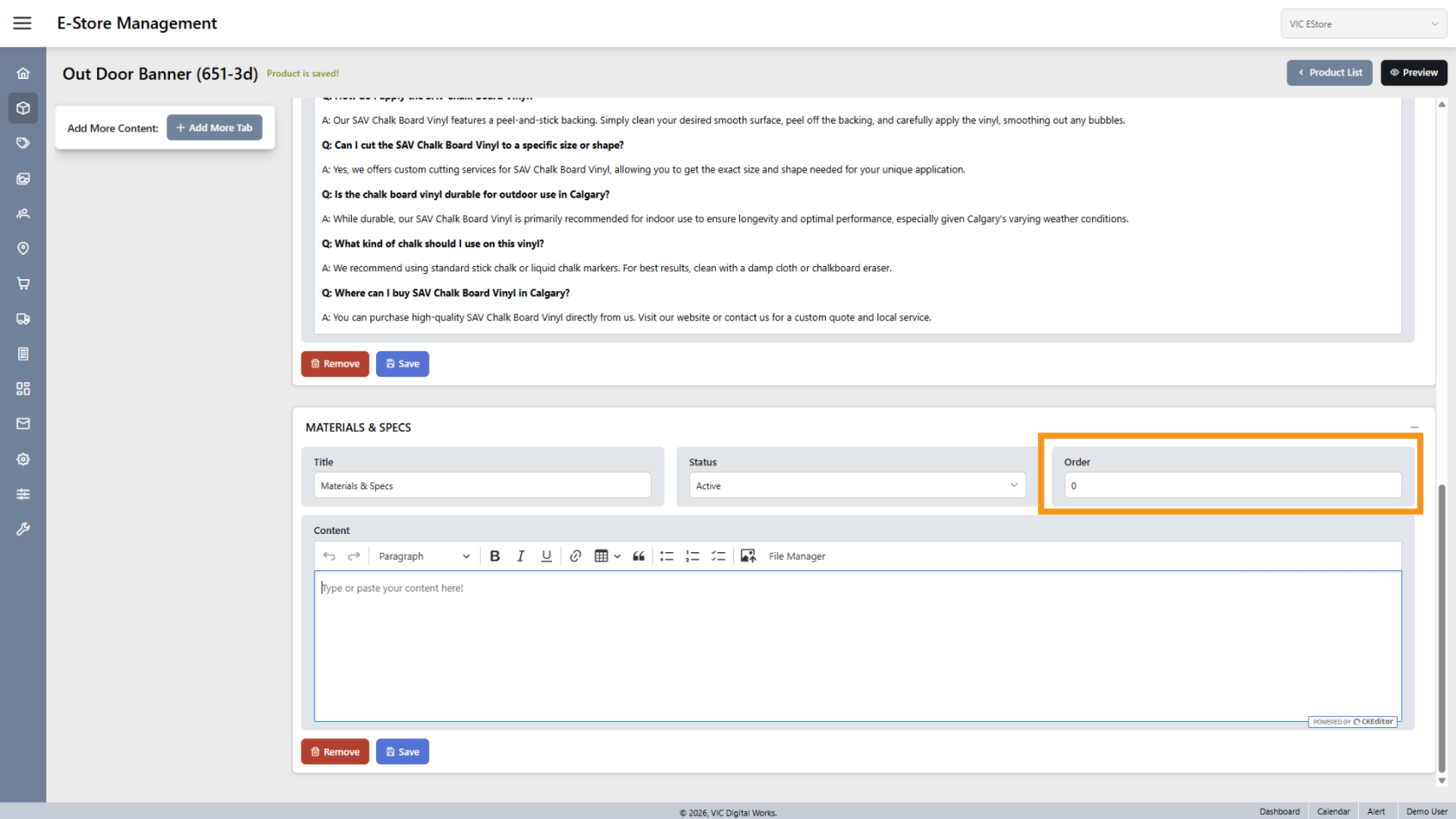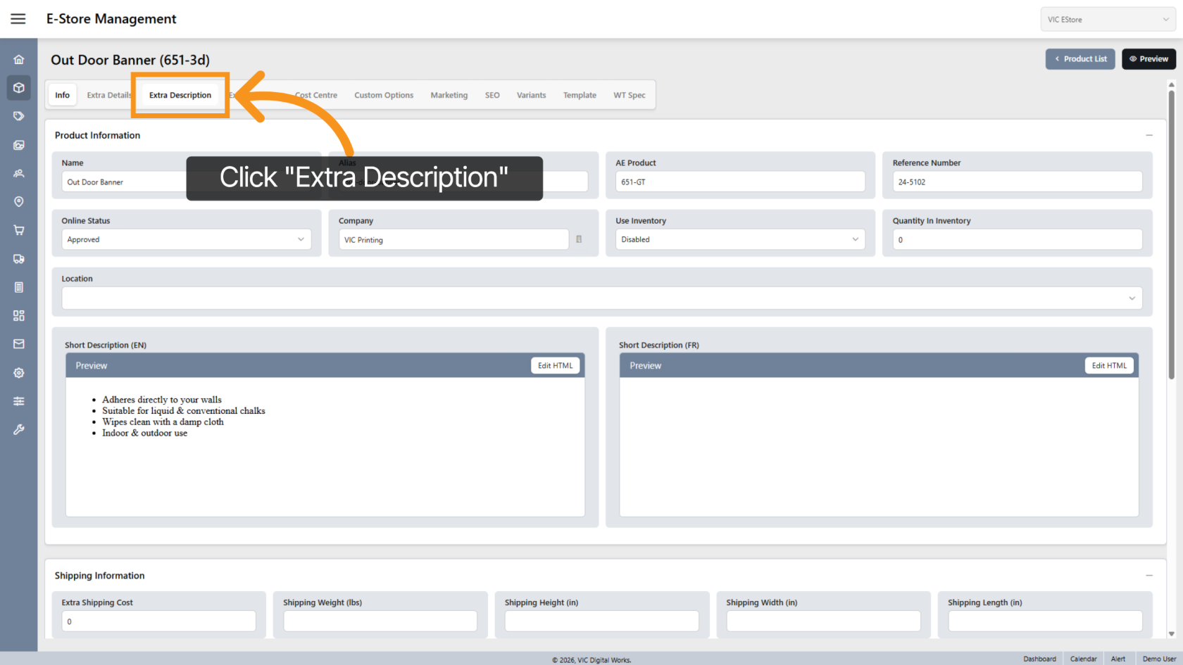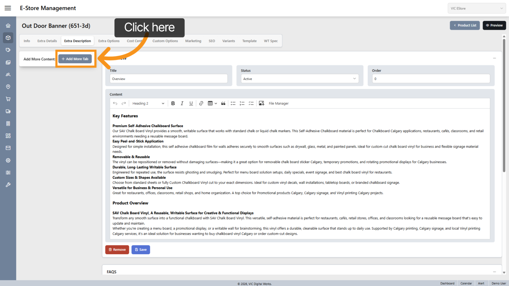 This tutorial explains how to configure additional description content for a product in the E-Store.