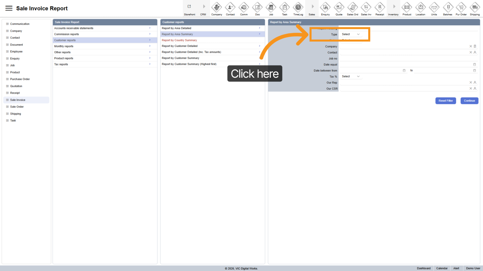 This tutorial walks you through how to generate an Invoice by Area Summary report in the Worktraq App.