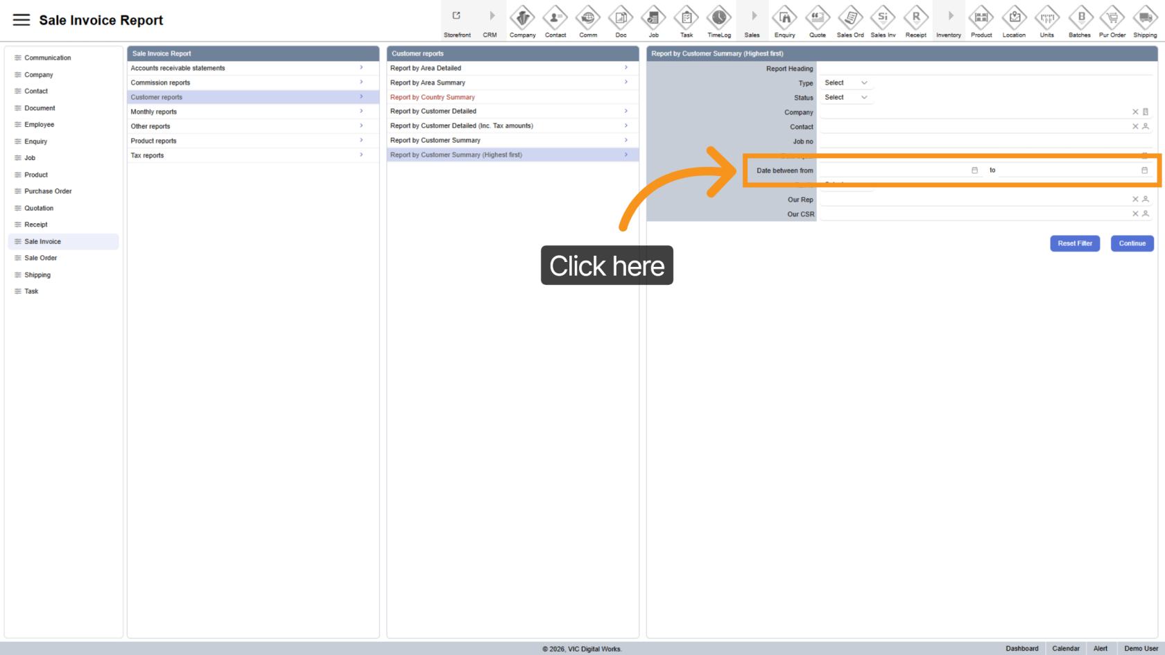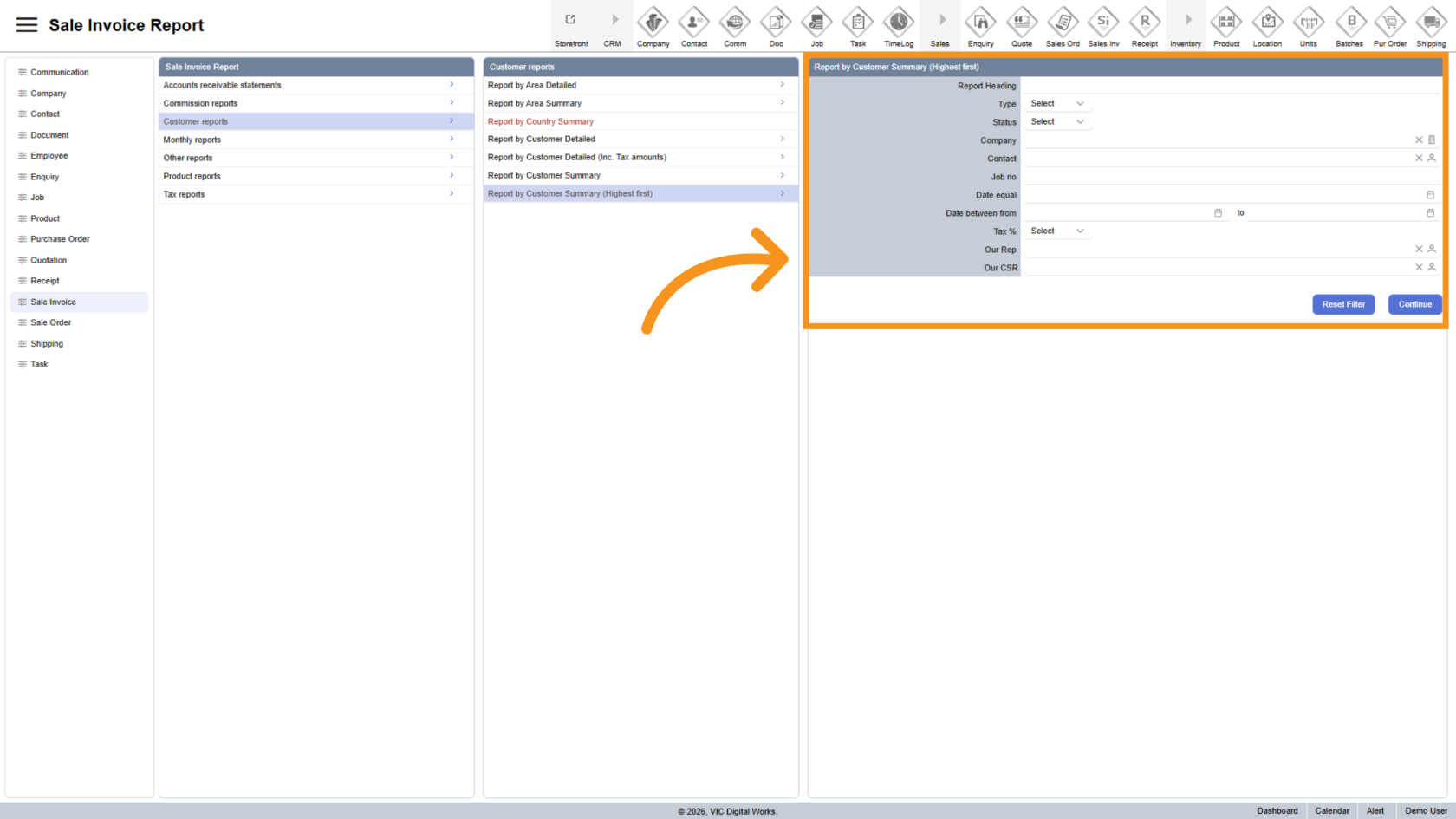 Click Report by Customer Summary (Highest first) to open the report configuration panel.