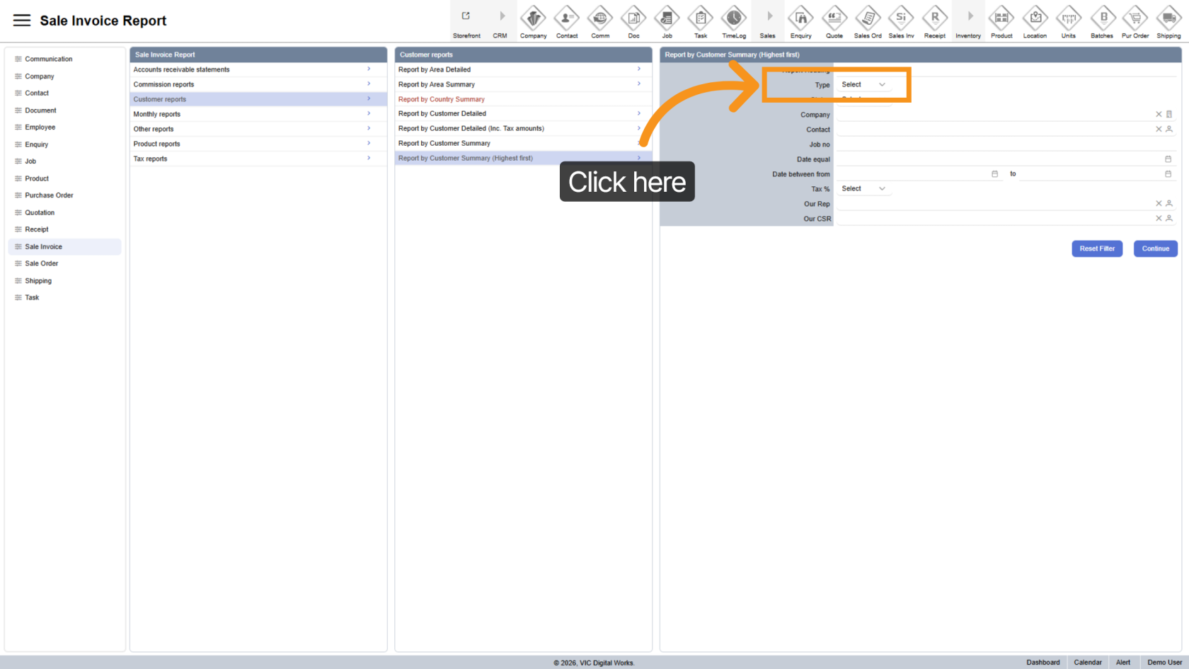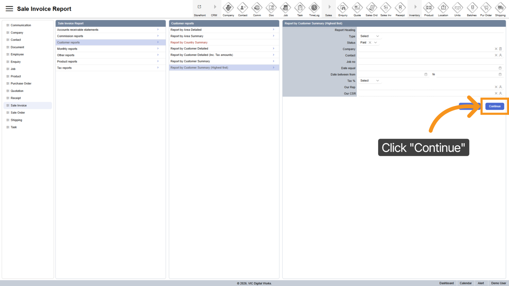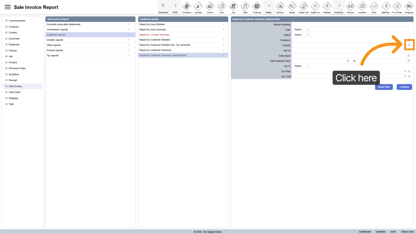 This tutorial walks you through how to generate an Invoice by Customer Summary (Highest first) report in the Worktraq App.