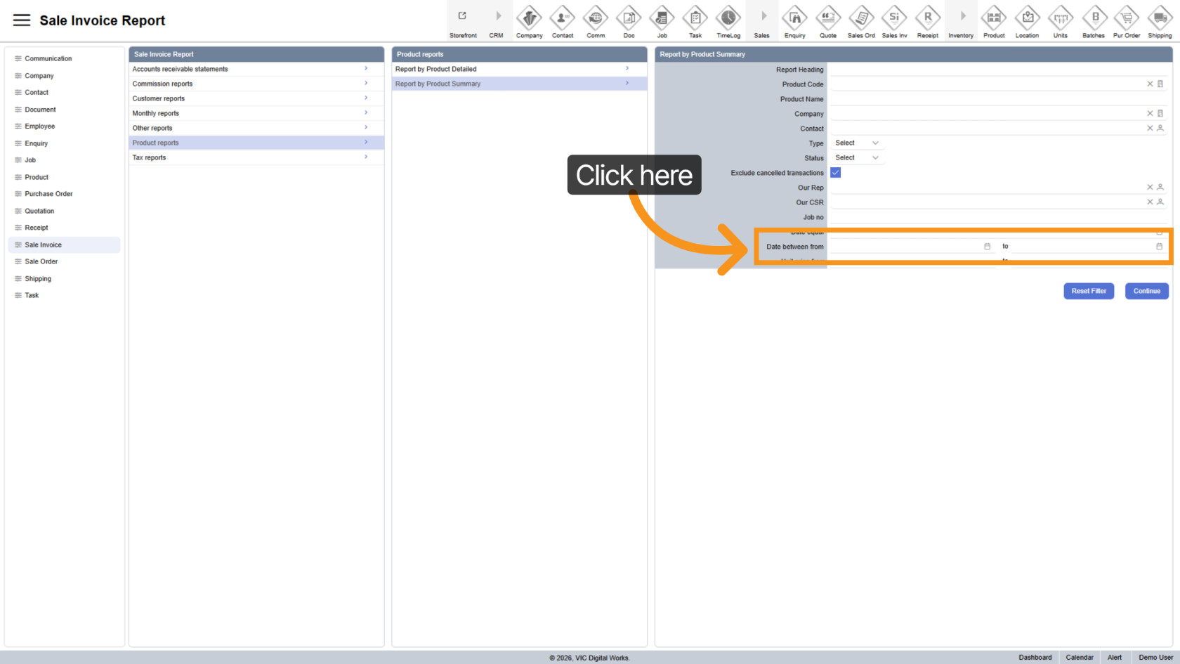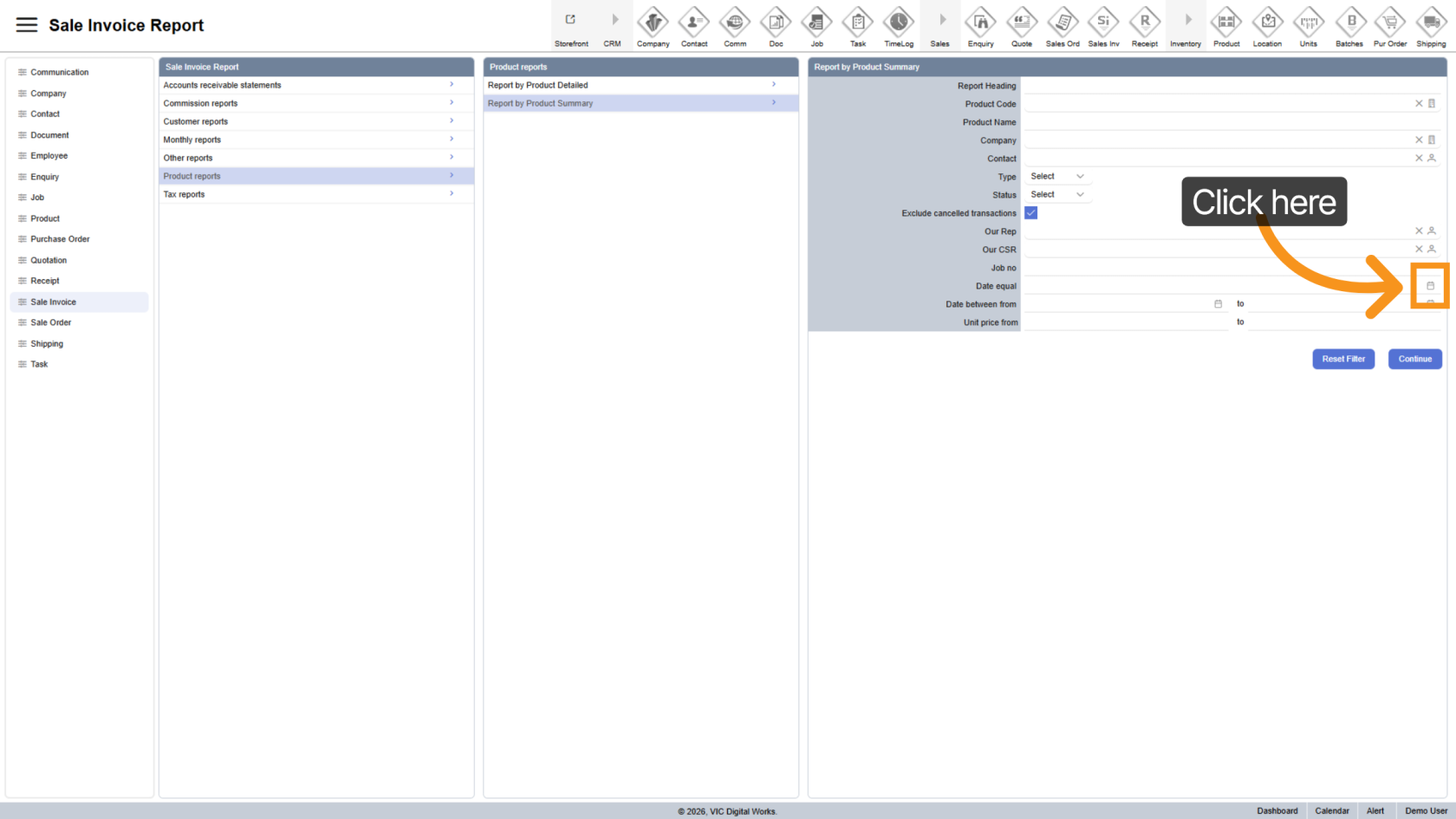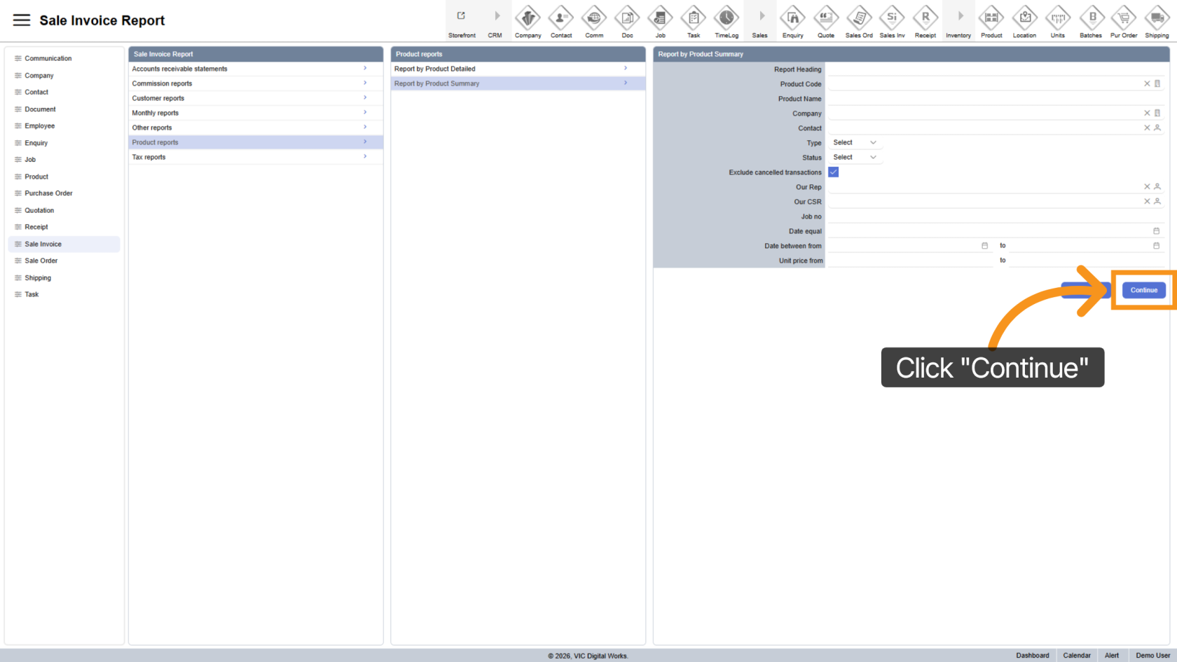 This tutorial guides you through generating summary sale invoice reports using the Worktraq App.