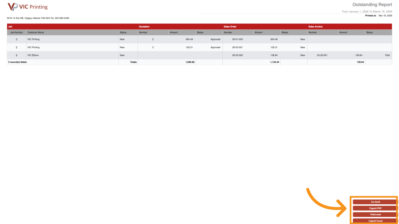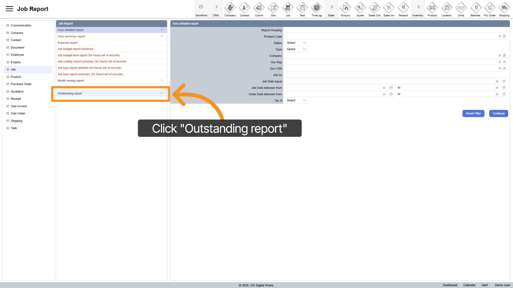 Choose "Outstanding Report" to view jobs that are still in progress.