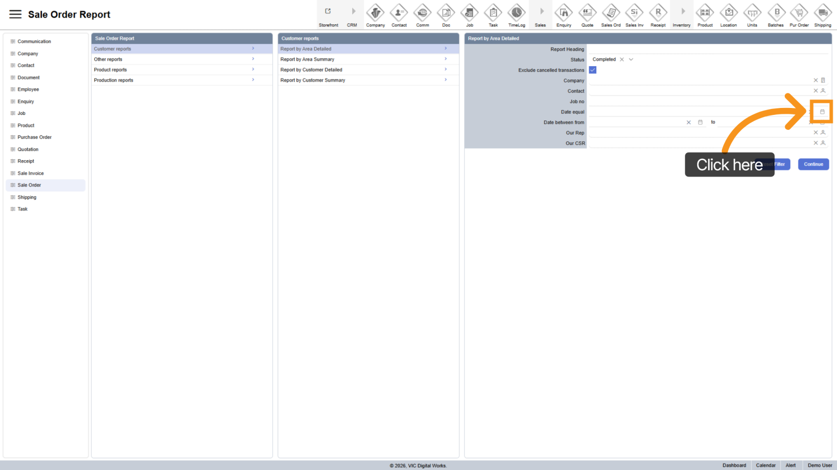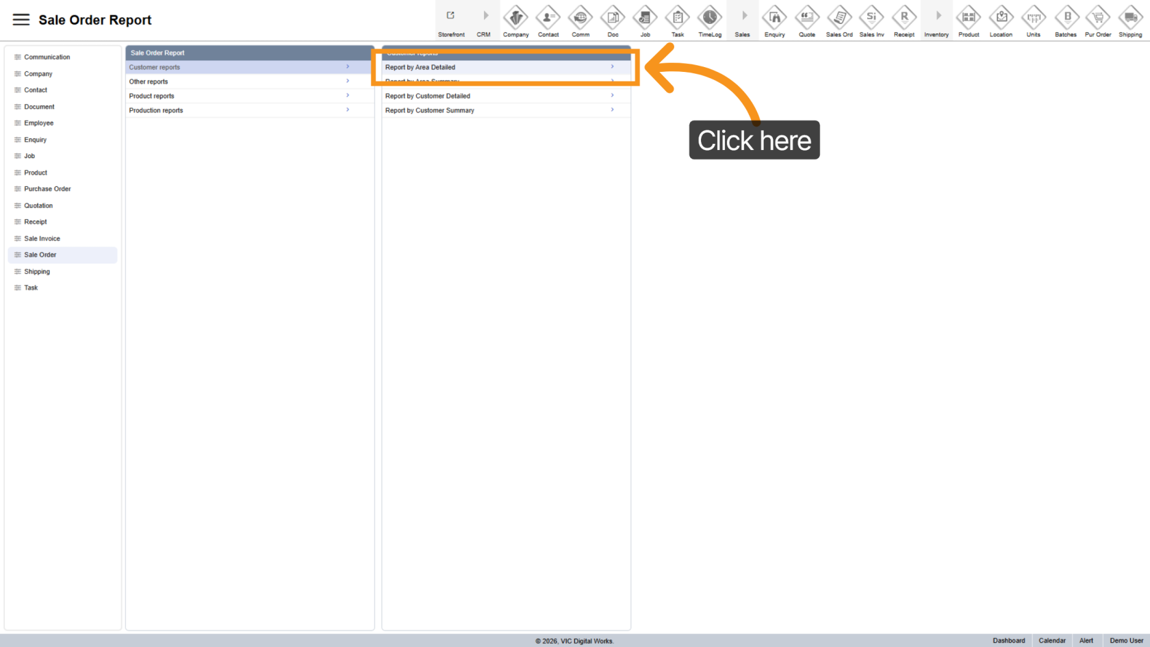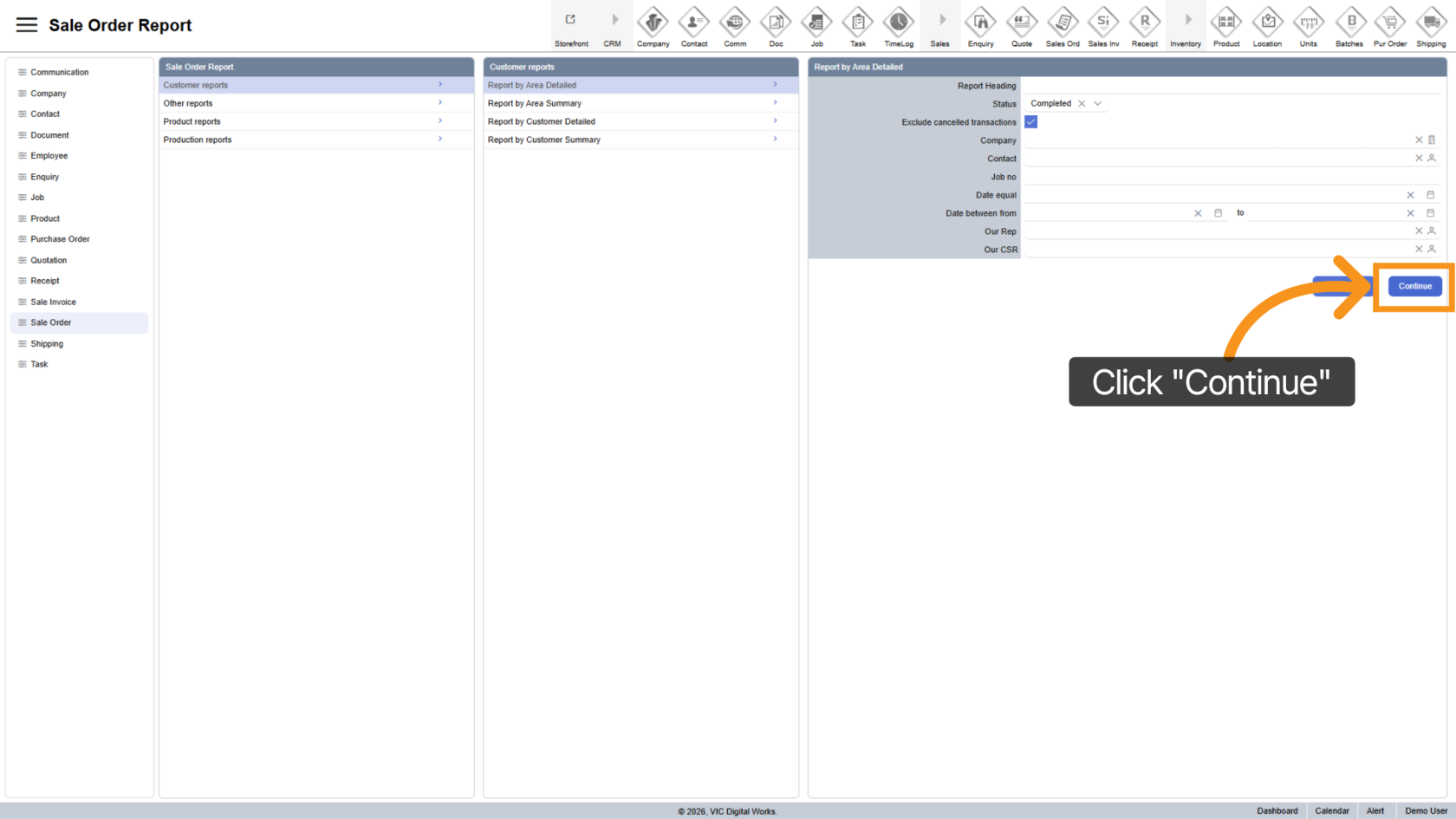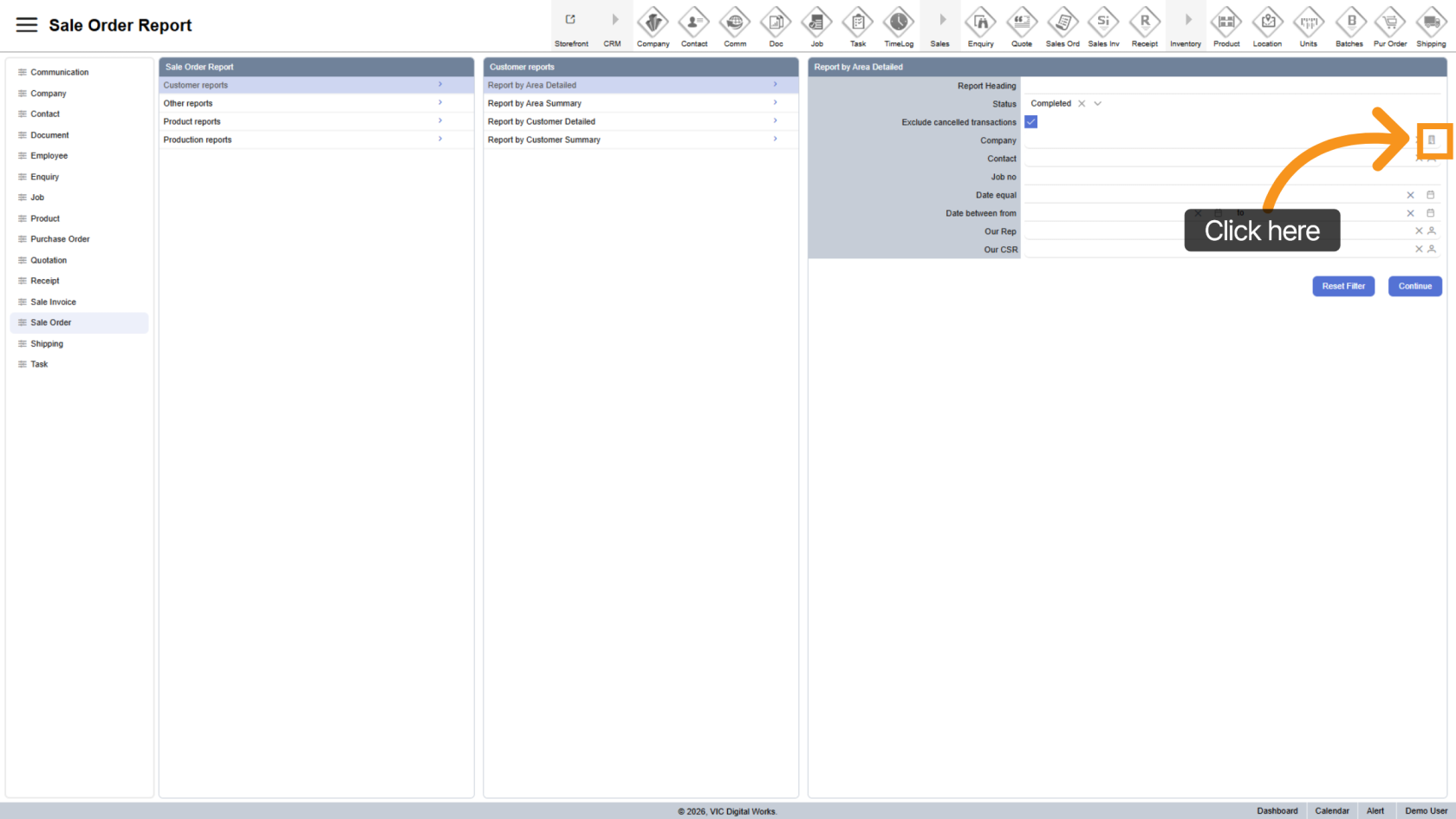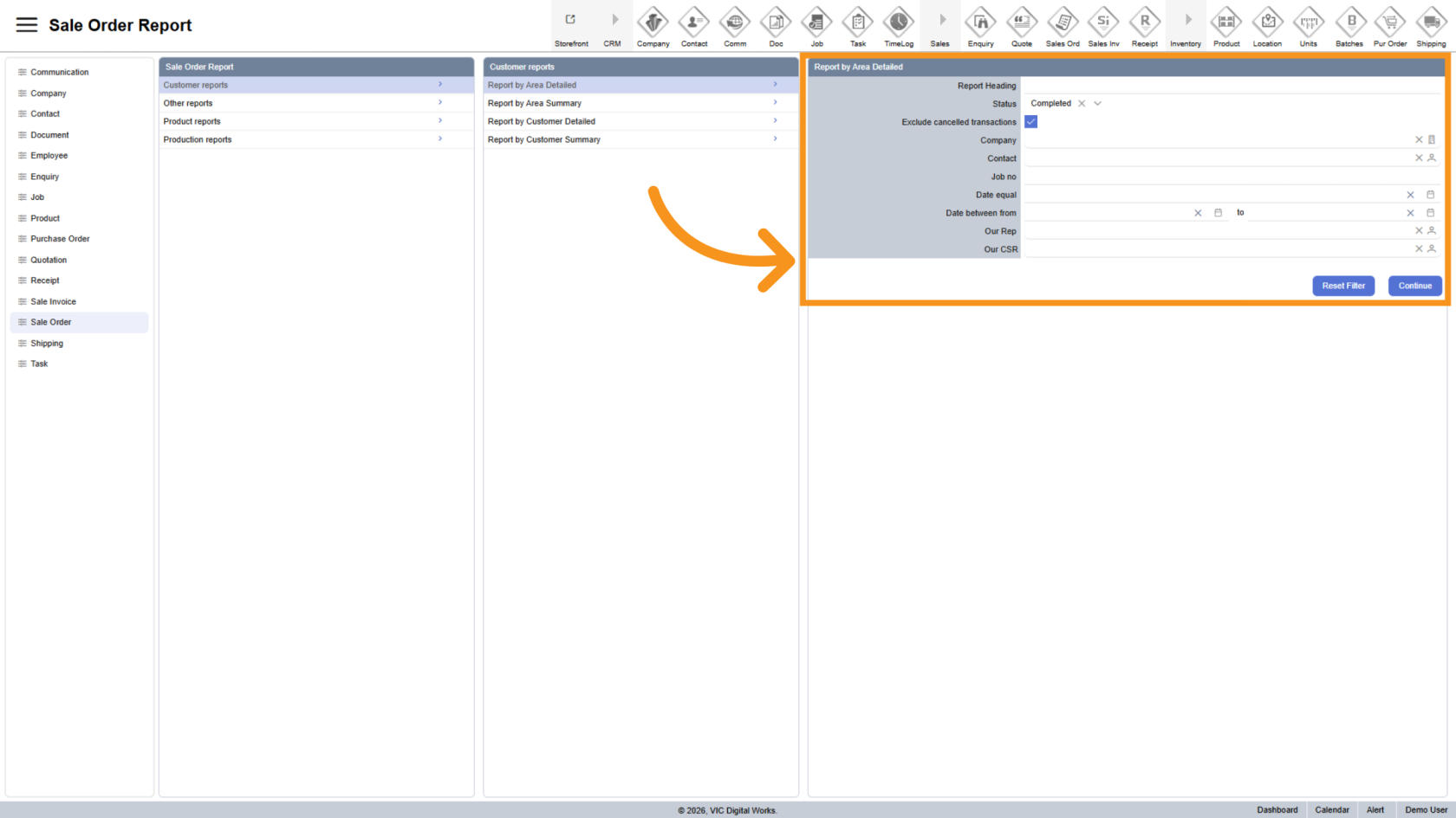 This tutorial guides you through generating Order Reports by Area Detailed using the Worktraq App.