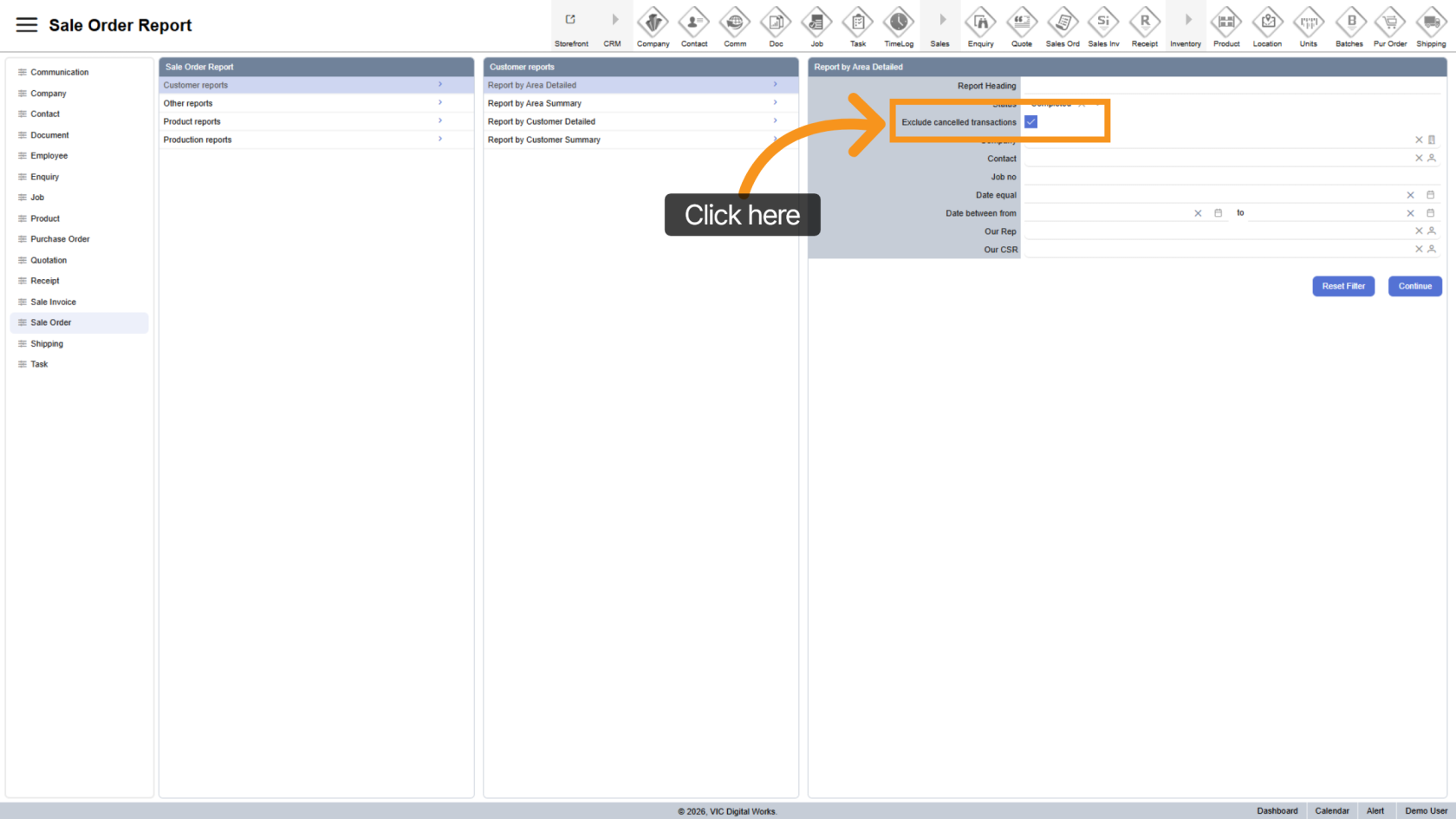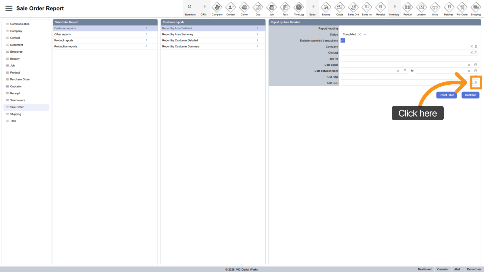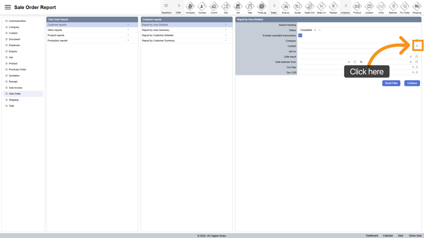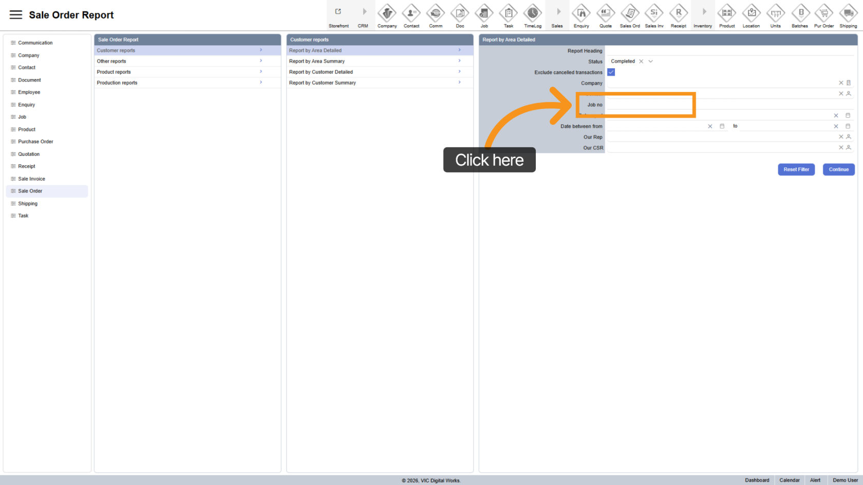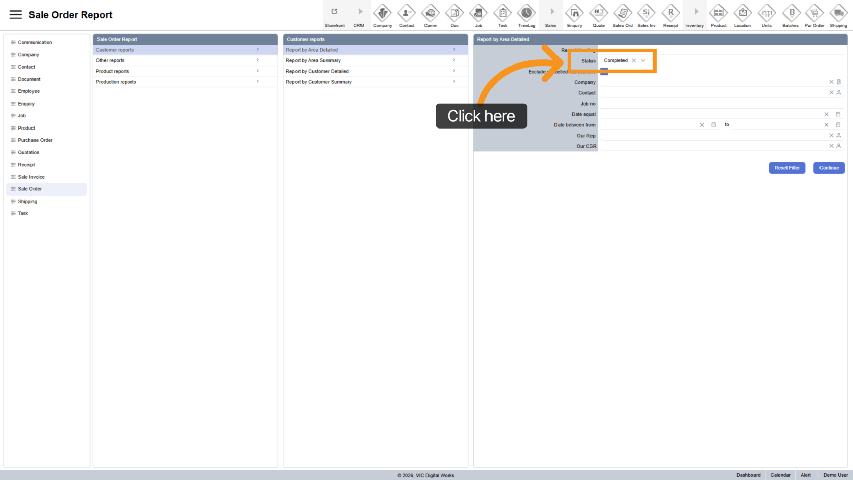 This tutorial guides you through generating Order Reports by Area Detailed using the Worktraq App.