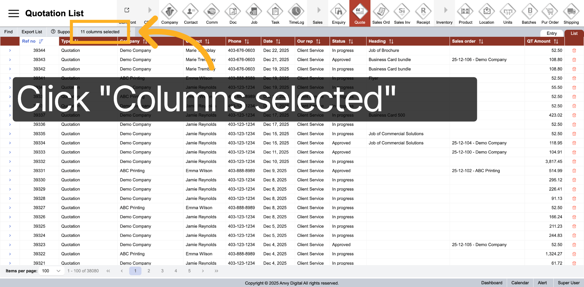 You have successfully configured and customized the quotation list. This setup enables efficient management and viewing of your quotation data.