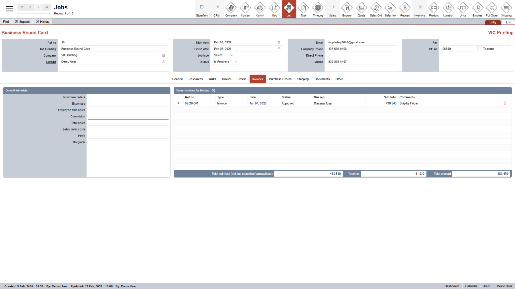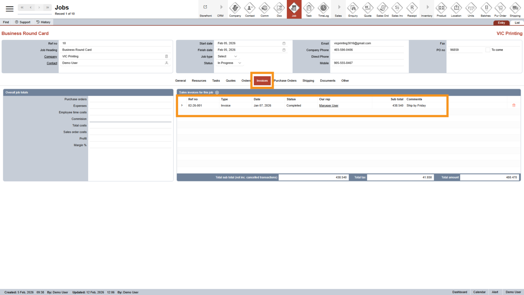 The system will open the job details. Under Invoices, you will see all invoices that require review.