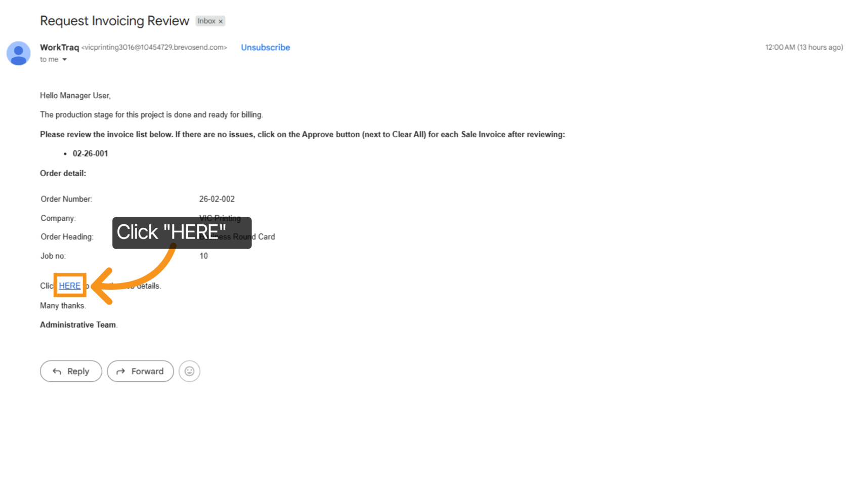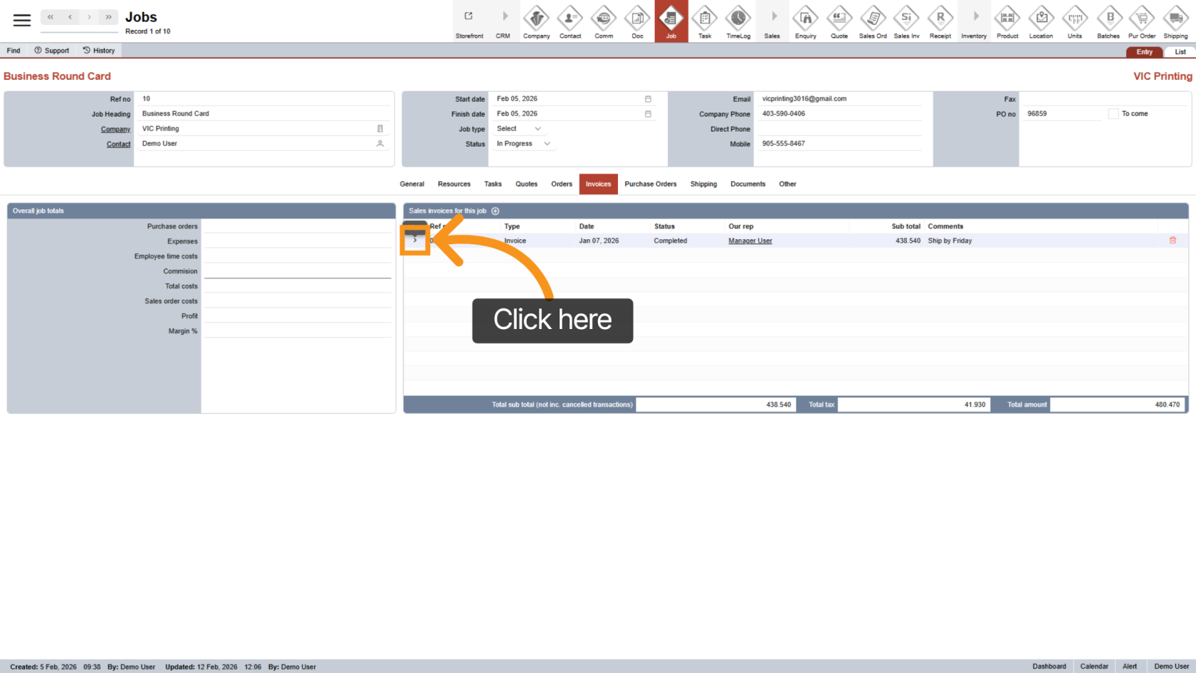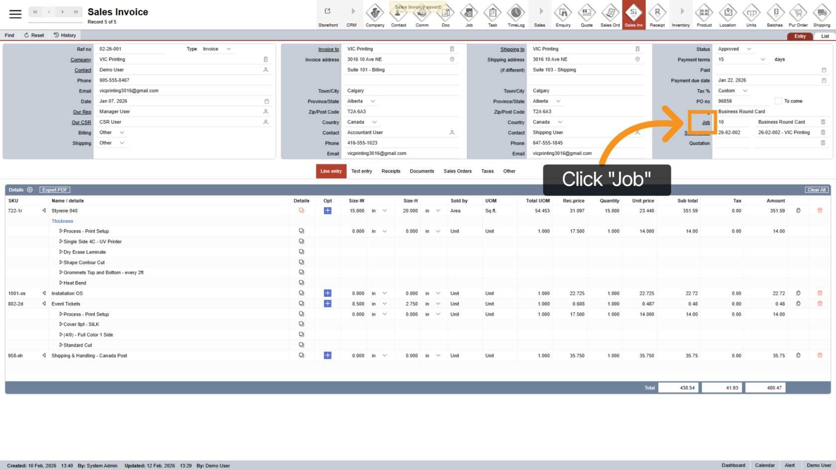 If there are multiple invoices for the same job, click the underlined Job link to return.