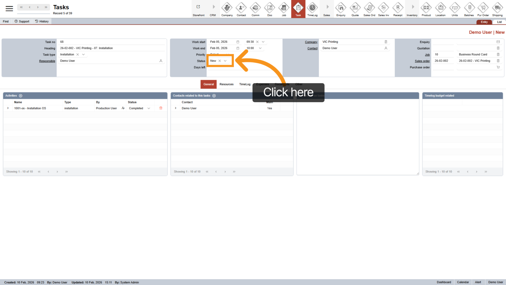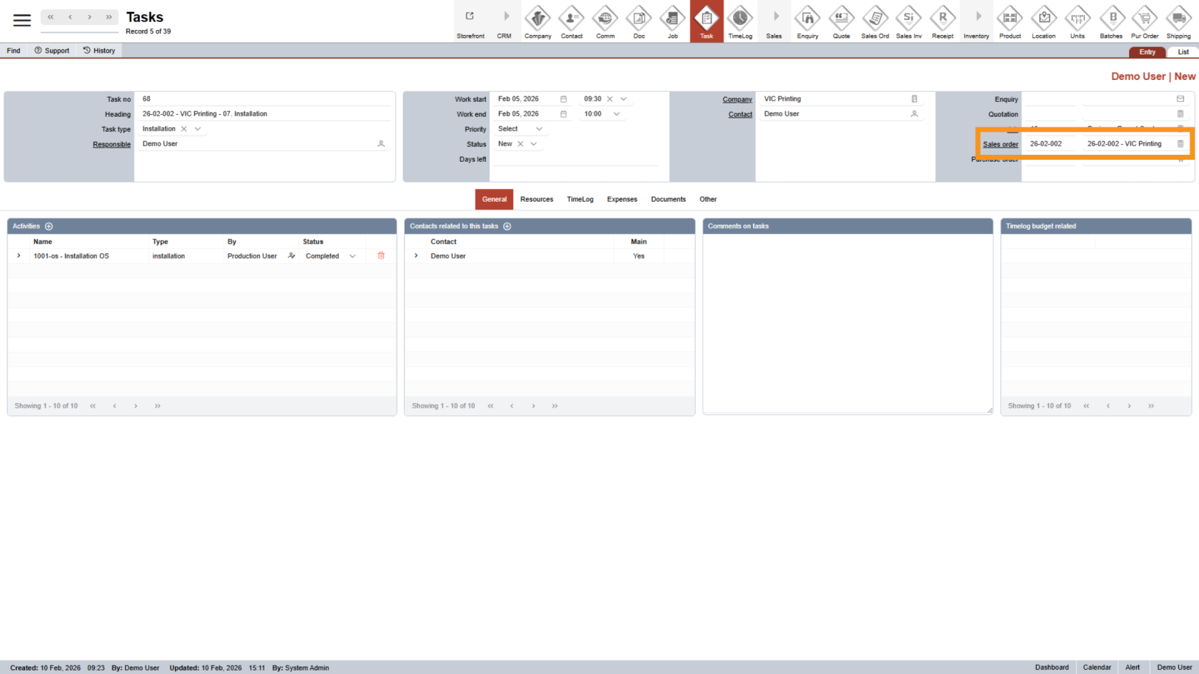 Review the task information carefully, especially the sales order number, to make sure you are working on the correct order.