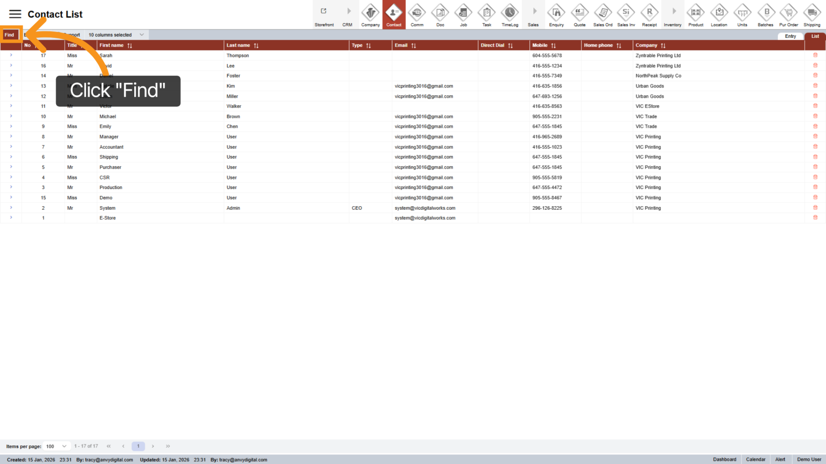Click "Find" to quickly locate a contact using specific filters. This makes it easier to find the contact you are looking for efficiently.