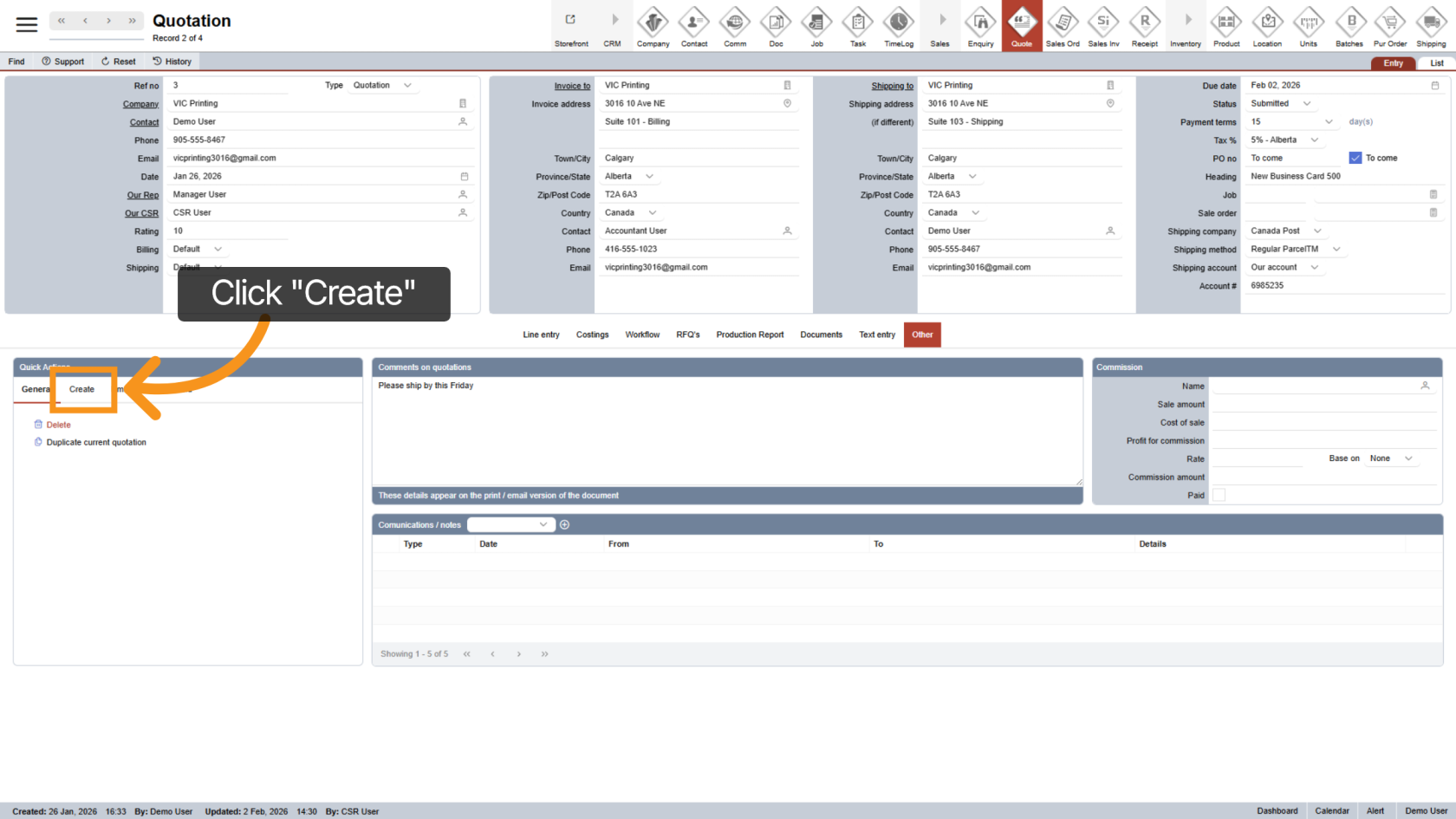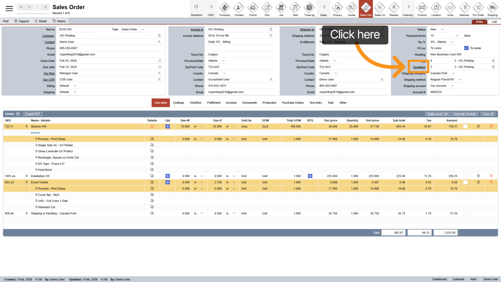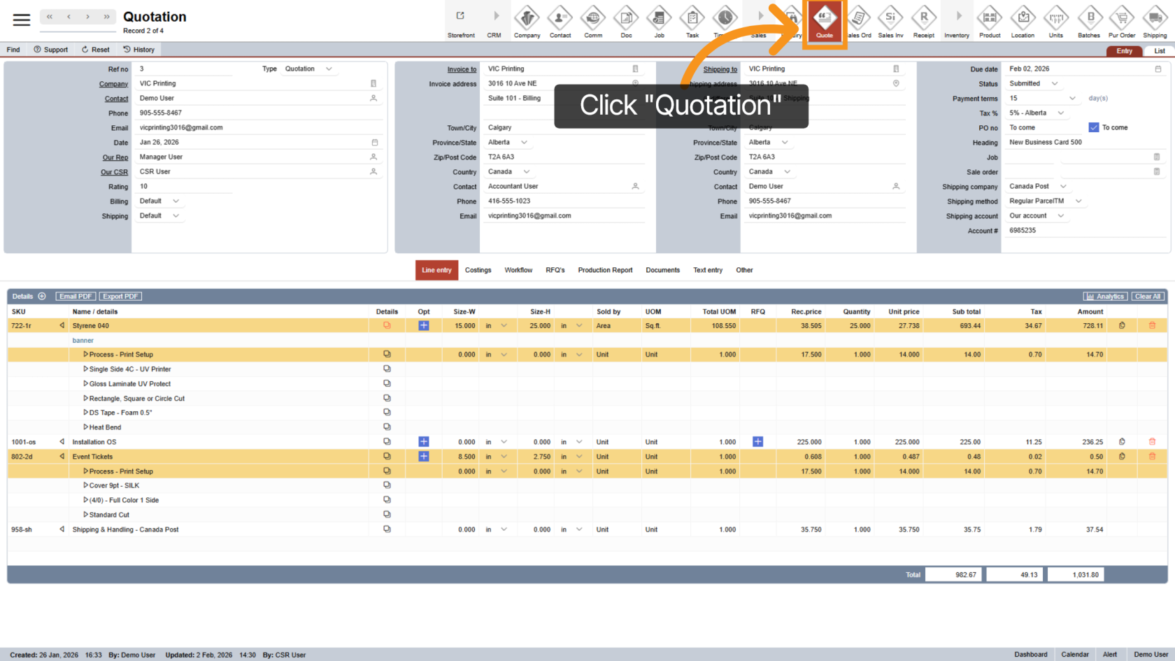 After the customer confirms the quotation, click "Quotation" in the main menu to open the quotation section.