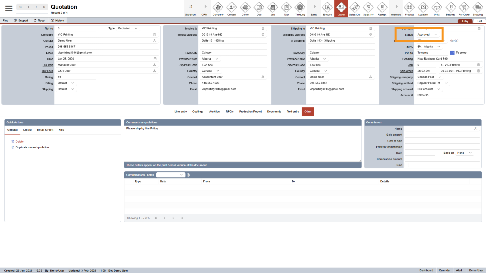 10. Quotation Status Update