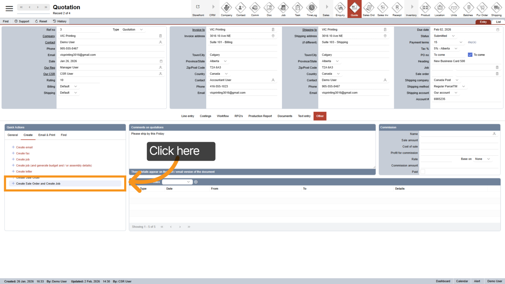 Click "Create Sales Order and Create Job" to generate: