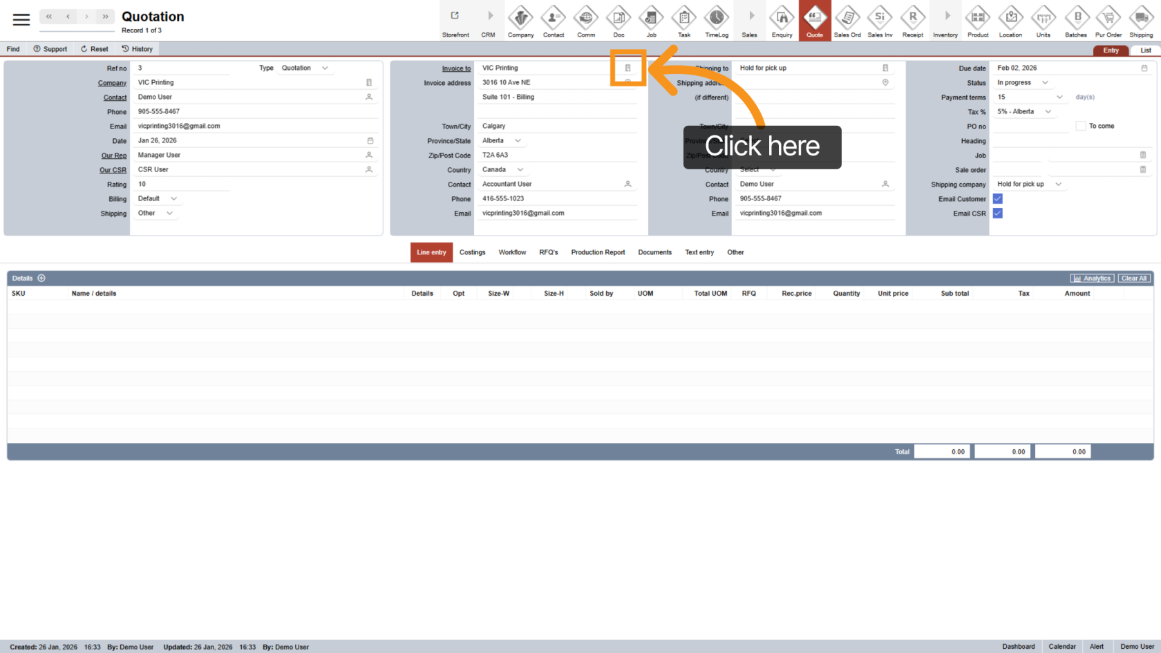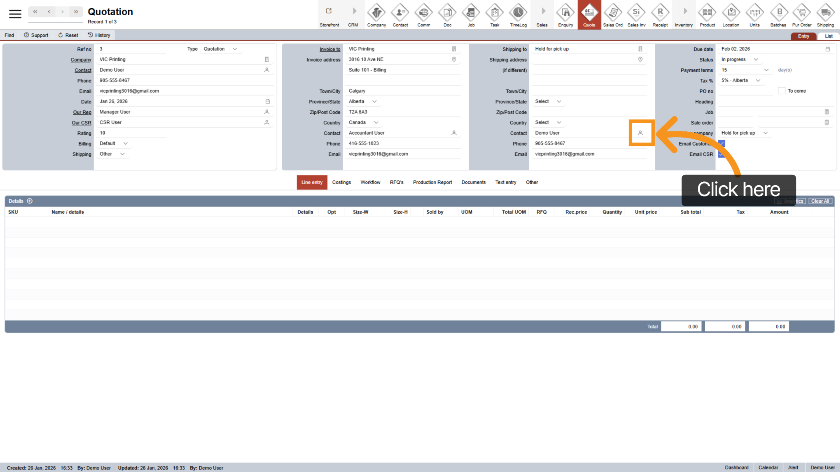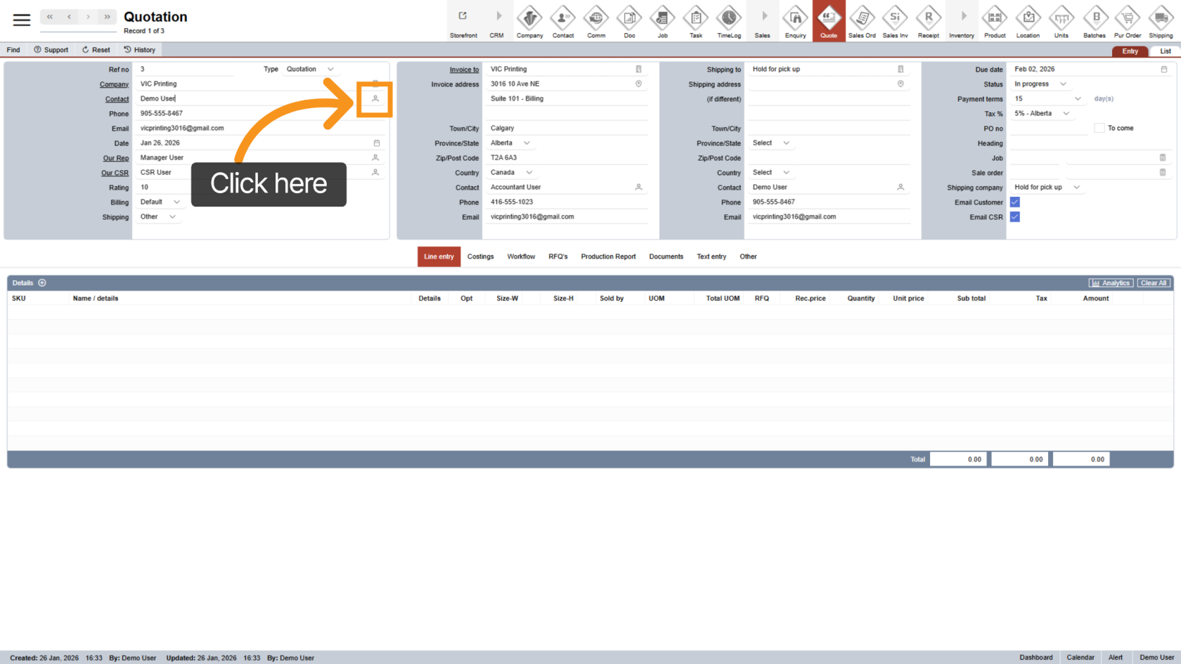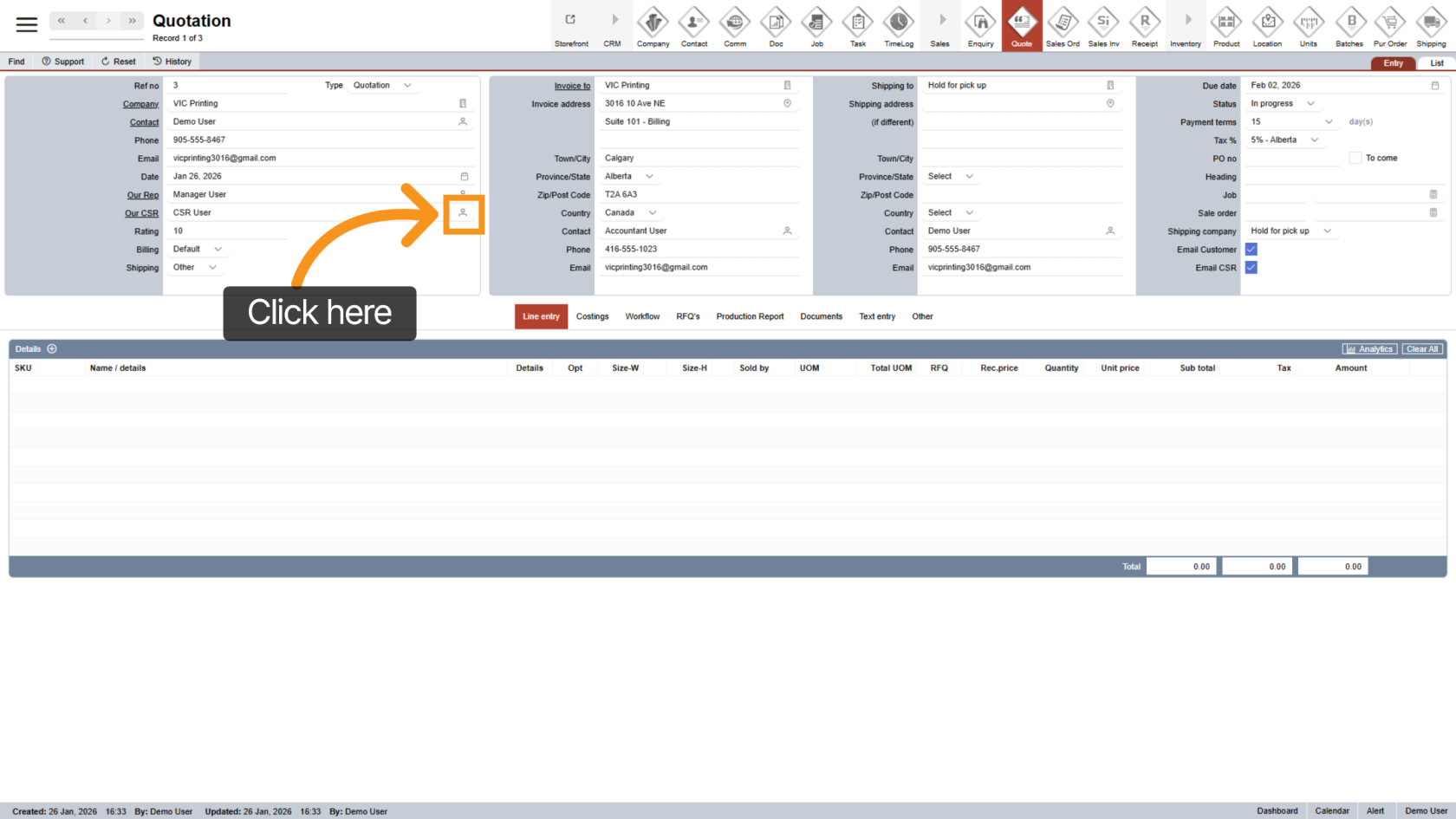 Click the contact-icon.png contact icon to assign or update the CSR responsible for this quotation.