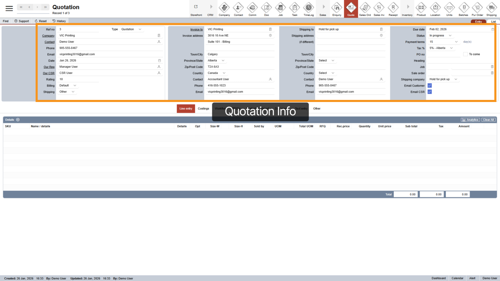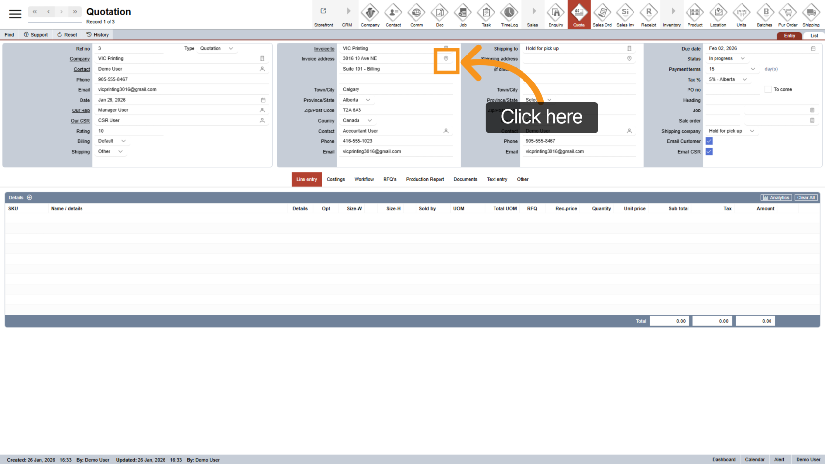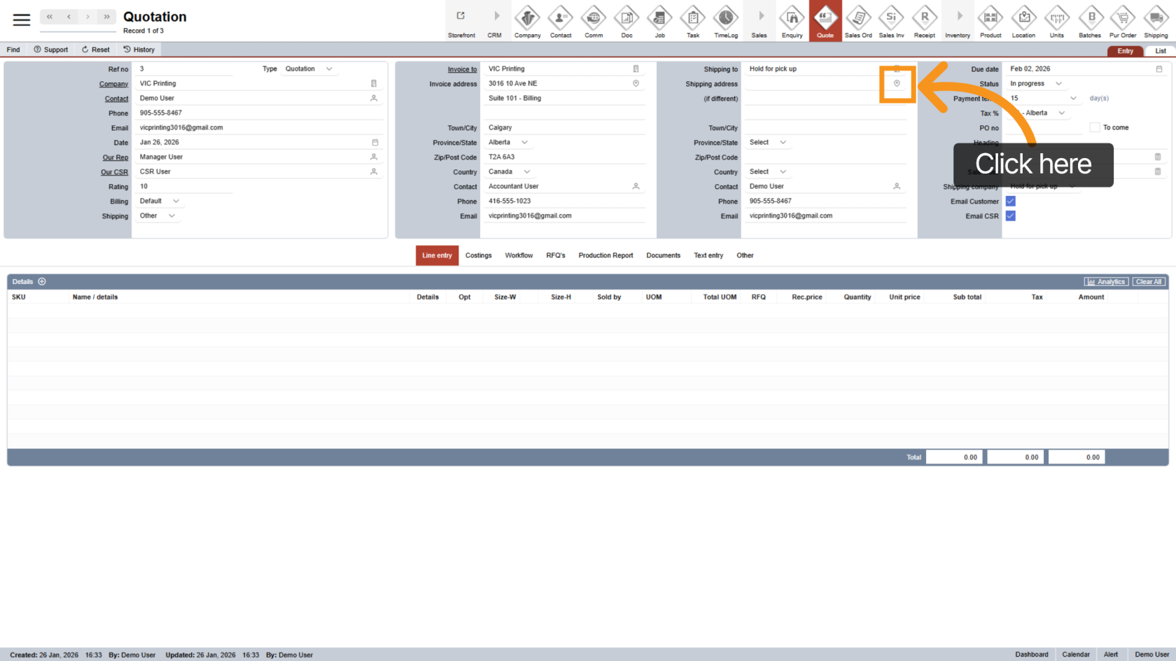 Click the contact-icon.png contact icon to assign or update the CSR responsible for this quotation.