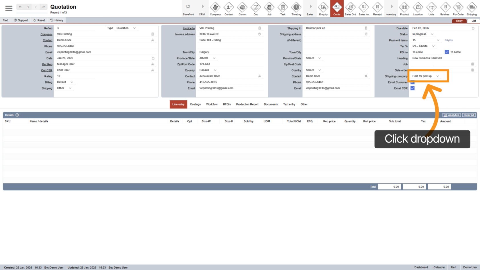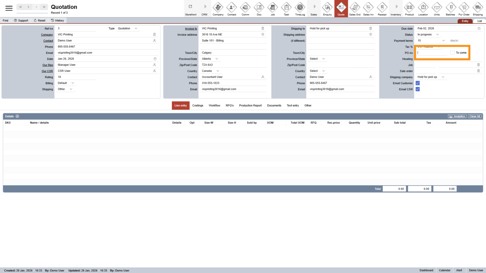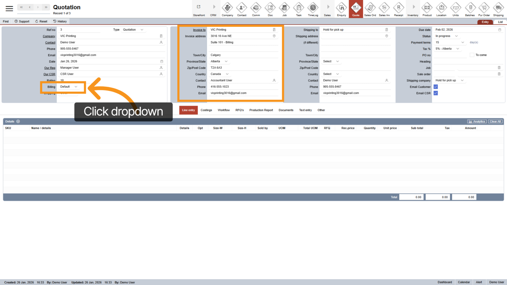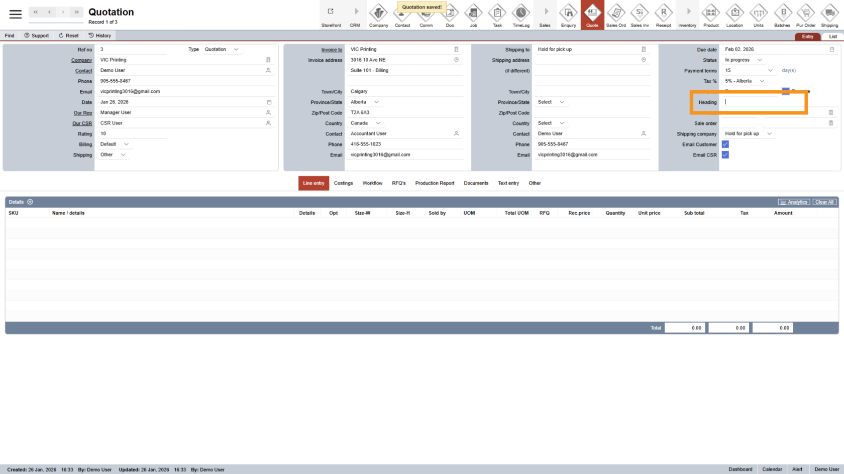 Click the contact-icon.png contact icon to assign or update the CSR responsible for this quotation.
