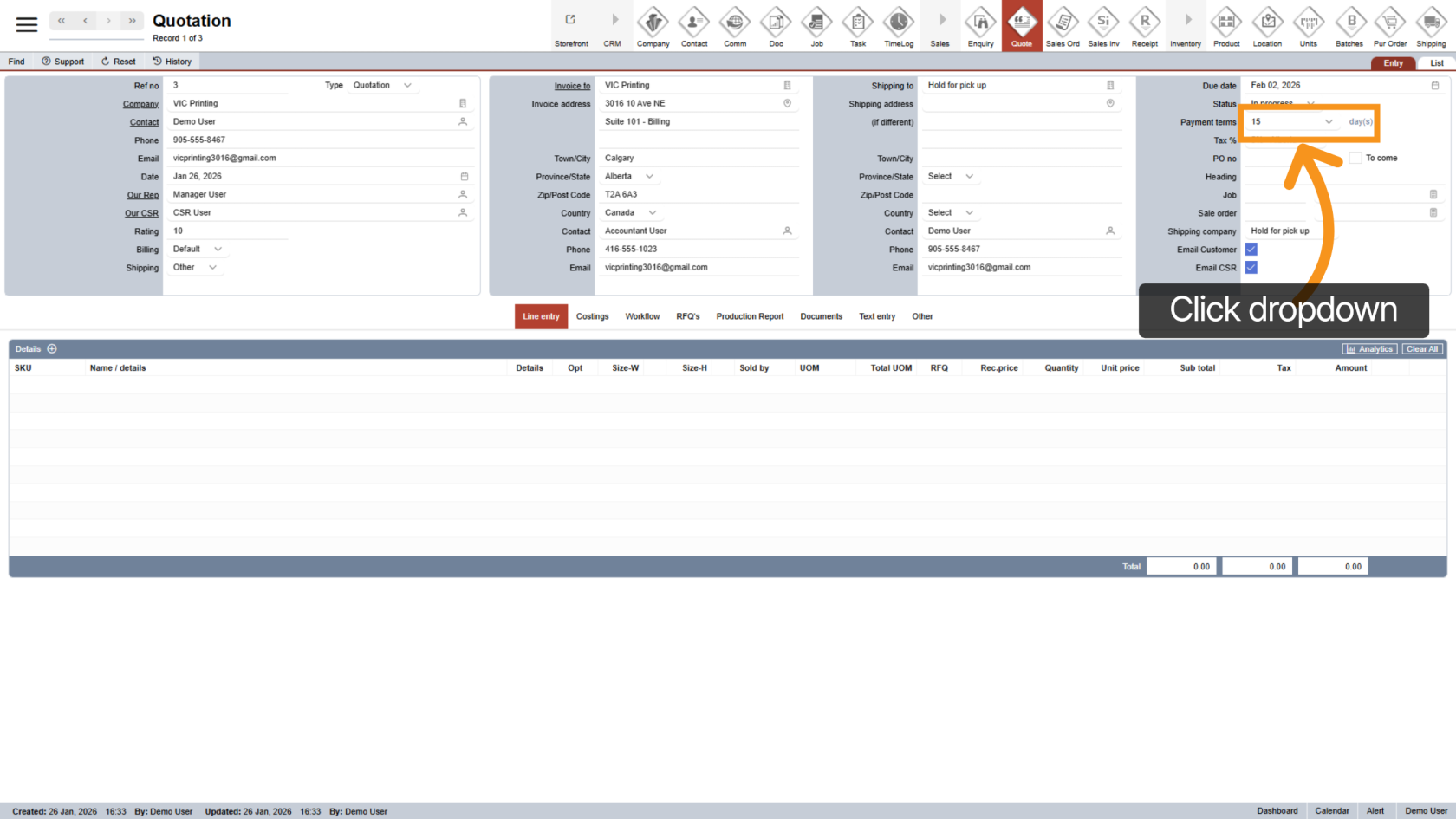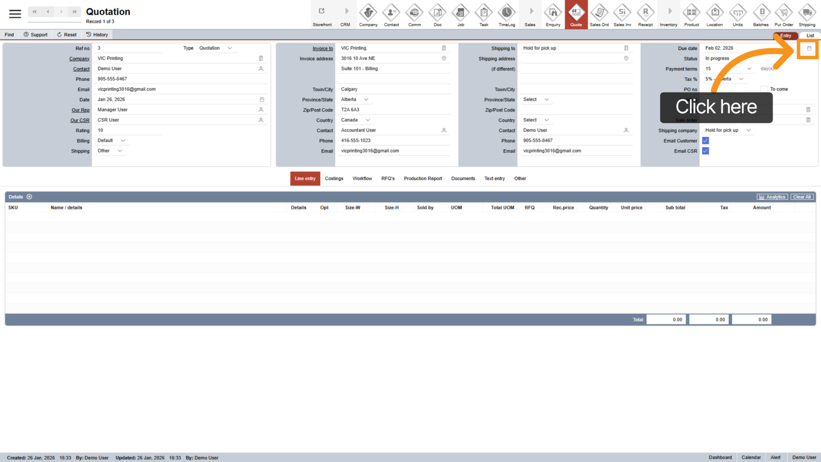 By default, the due date is set to 7 days from the quotation date. Click the calendar-icon.png date icon to change it.