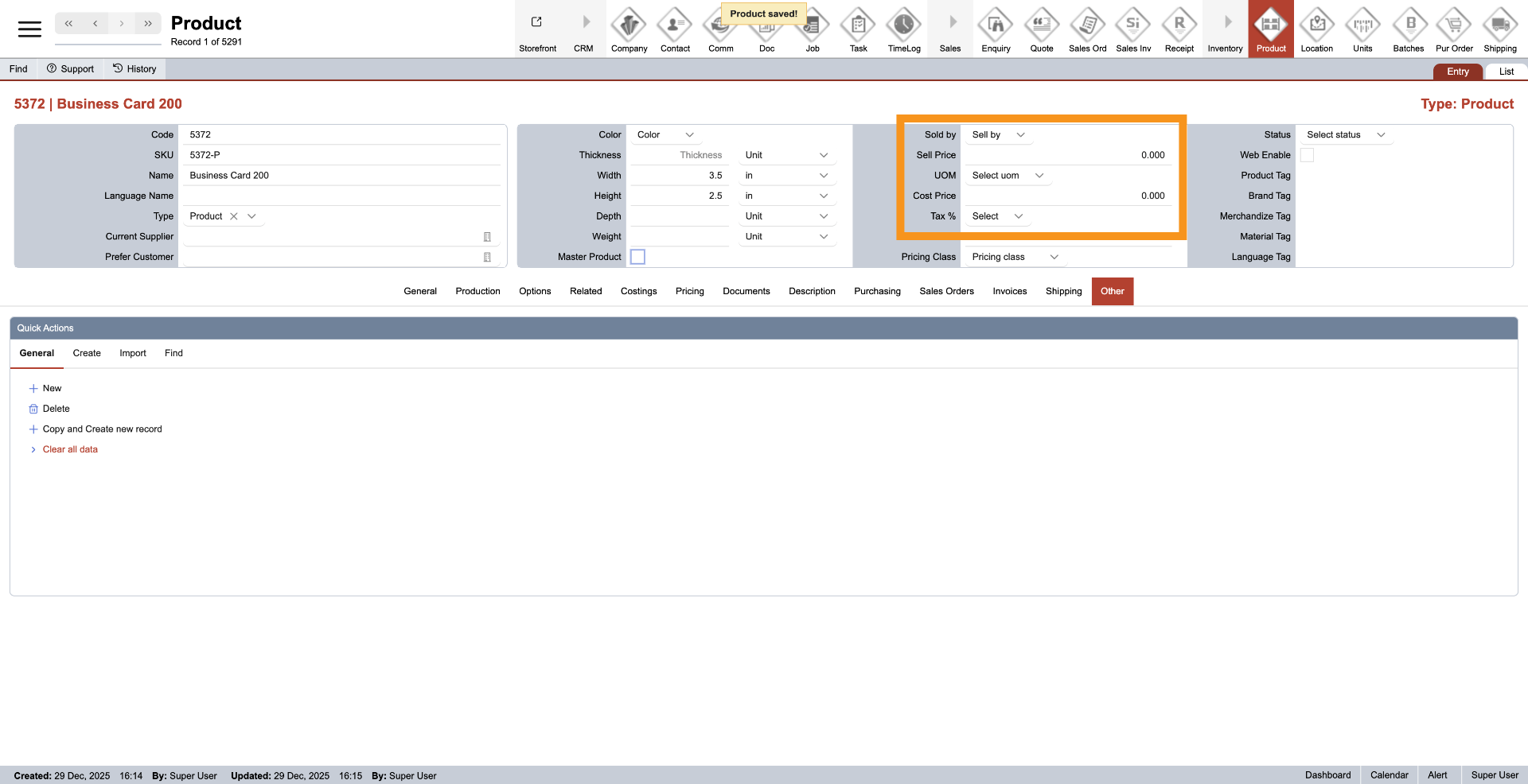 Continue to provide details for pricing, design the unit, and specify the unit of measure (UOM) for sales. Additionally, input the costs and pricing. For costing and pricing, you can establish a timeline regarding when we will address costing and price breaks in the future.