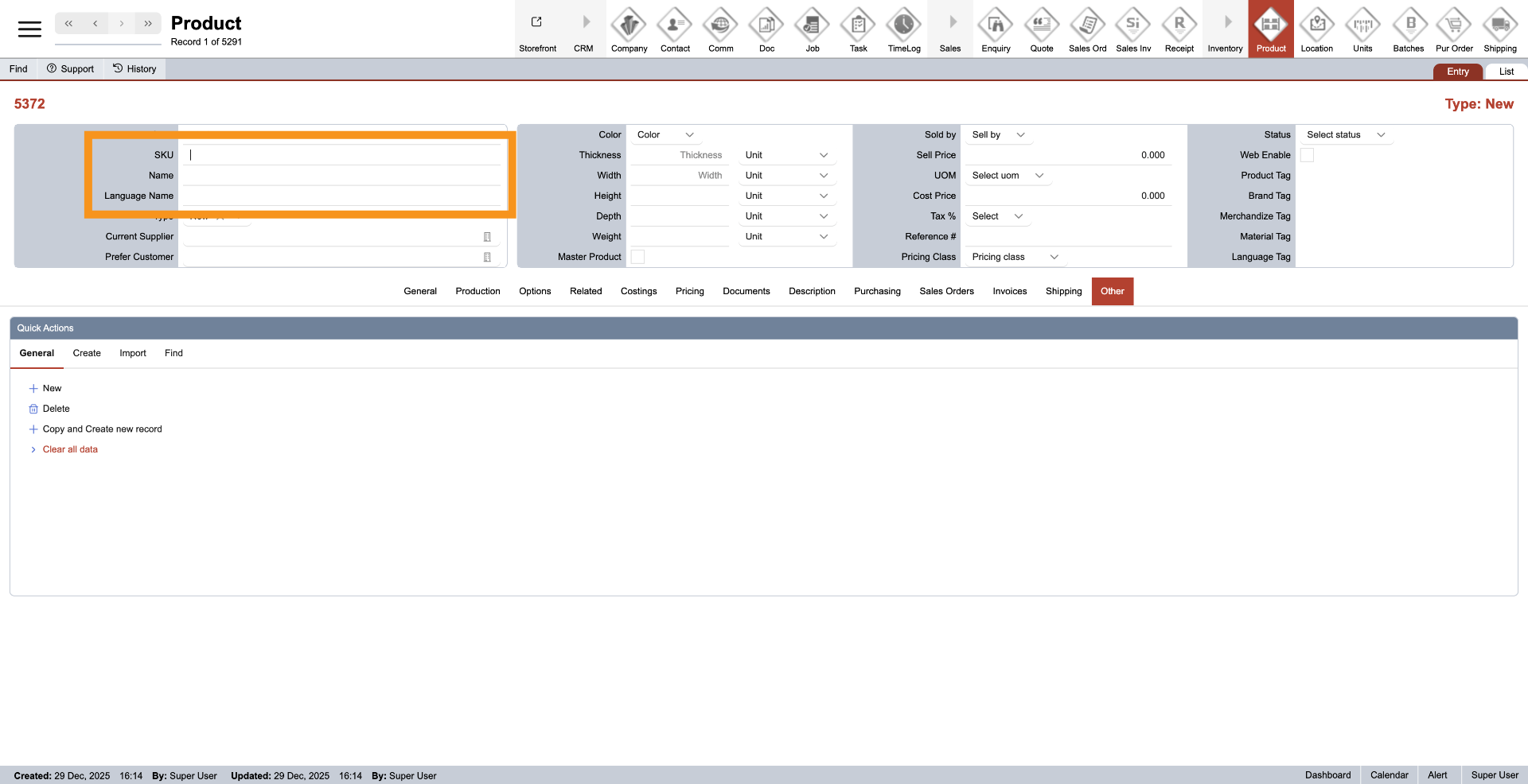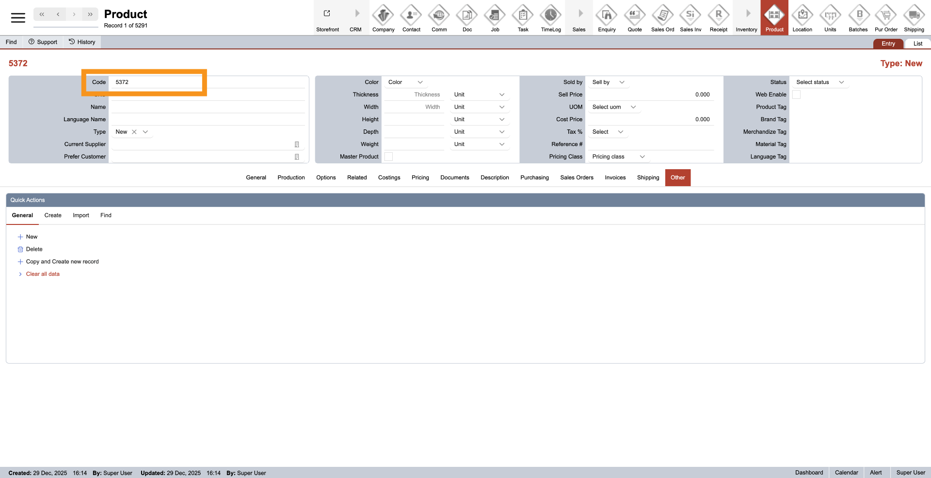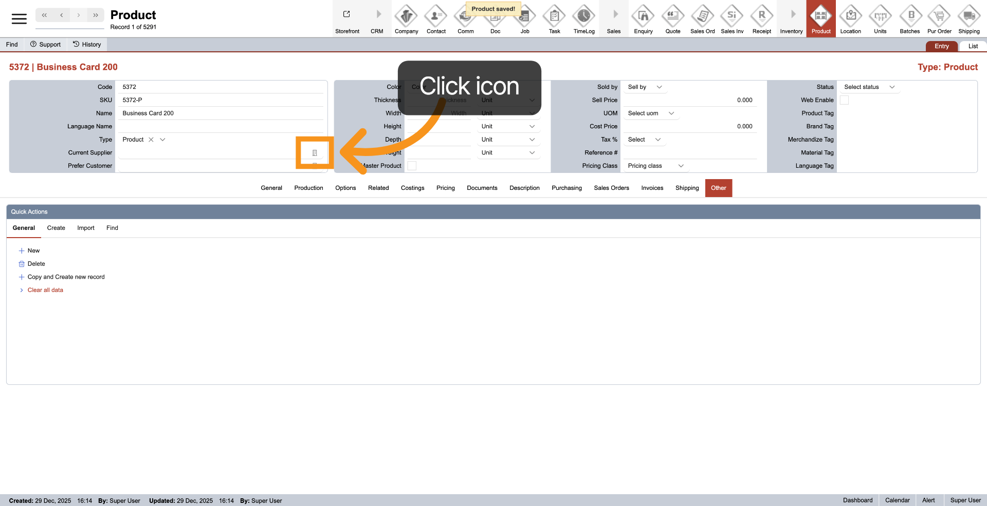 Click the dropdown next to "Type" to select the product type, such as Product or Options. This will help you better organize and locate items, making the system clearer and more structured.