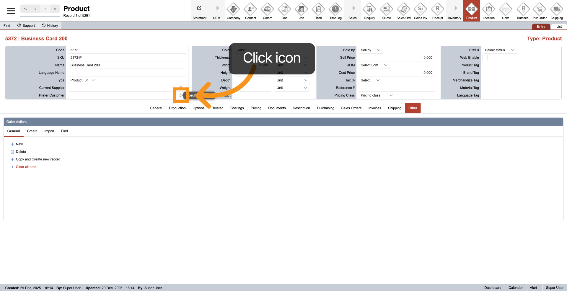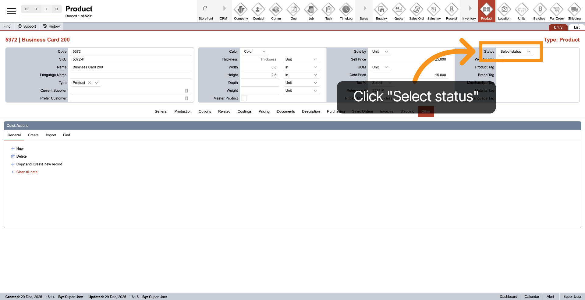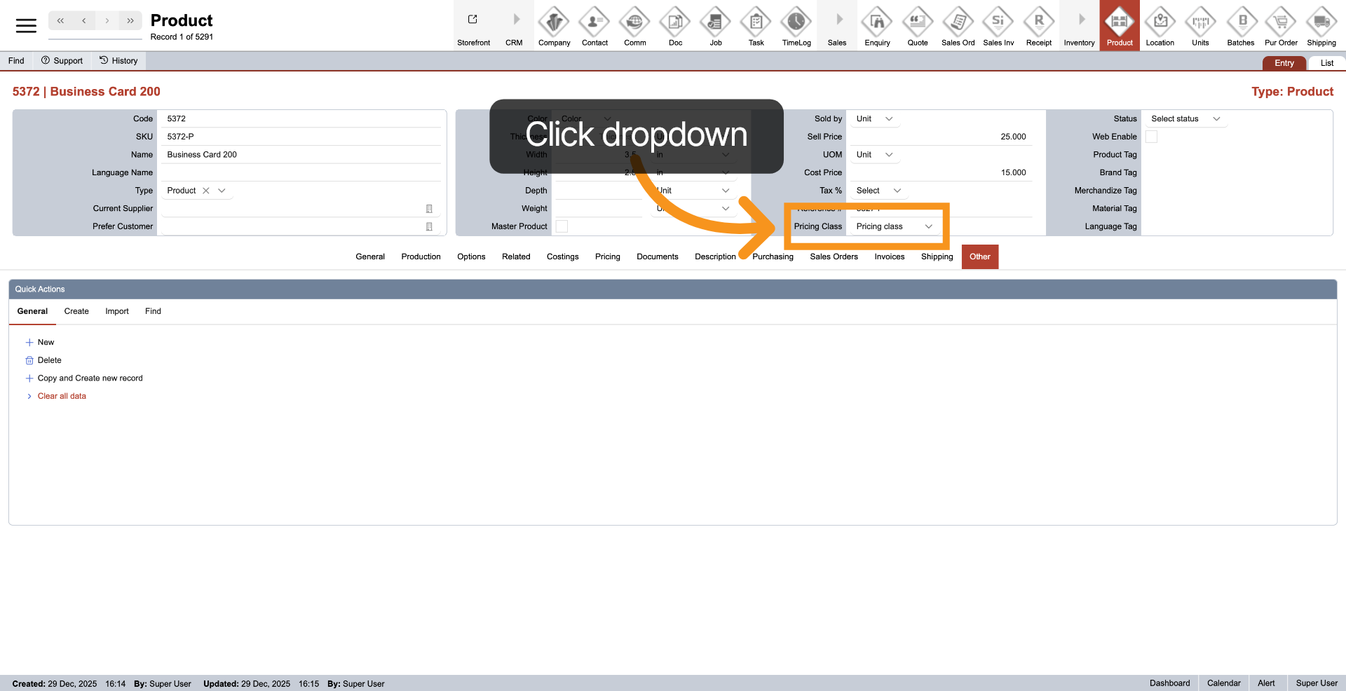 Click the dropdown next to "Type" to select the product type, such as Product or Options. This will help you better organize and locate items, making the system clearer and more structured.
