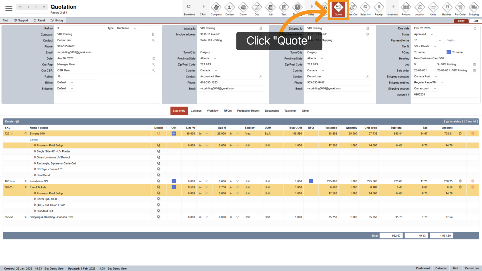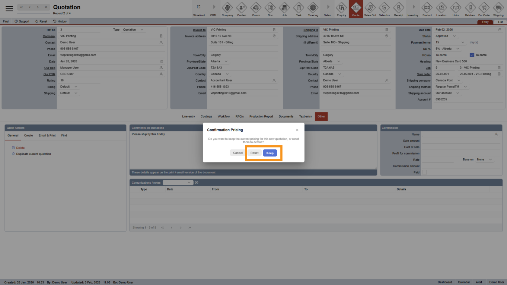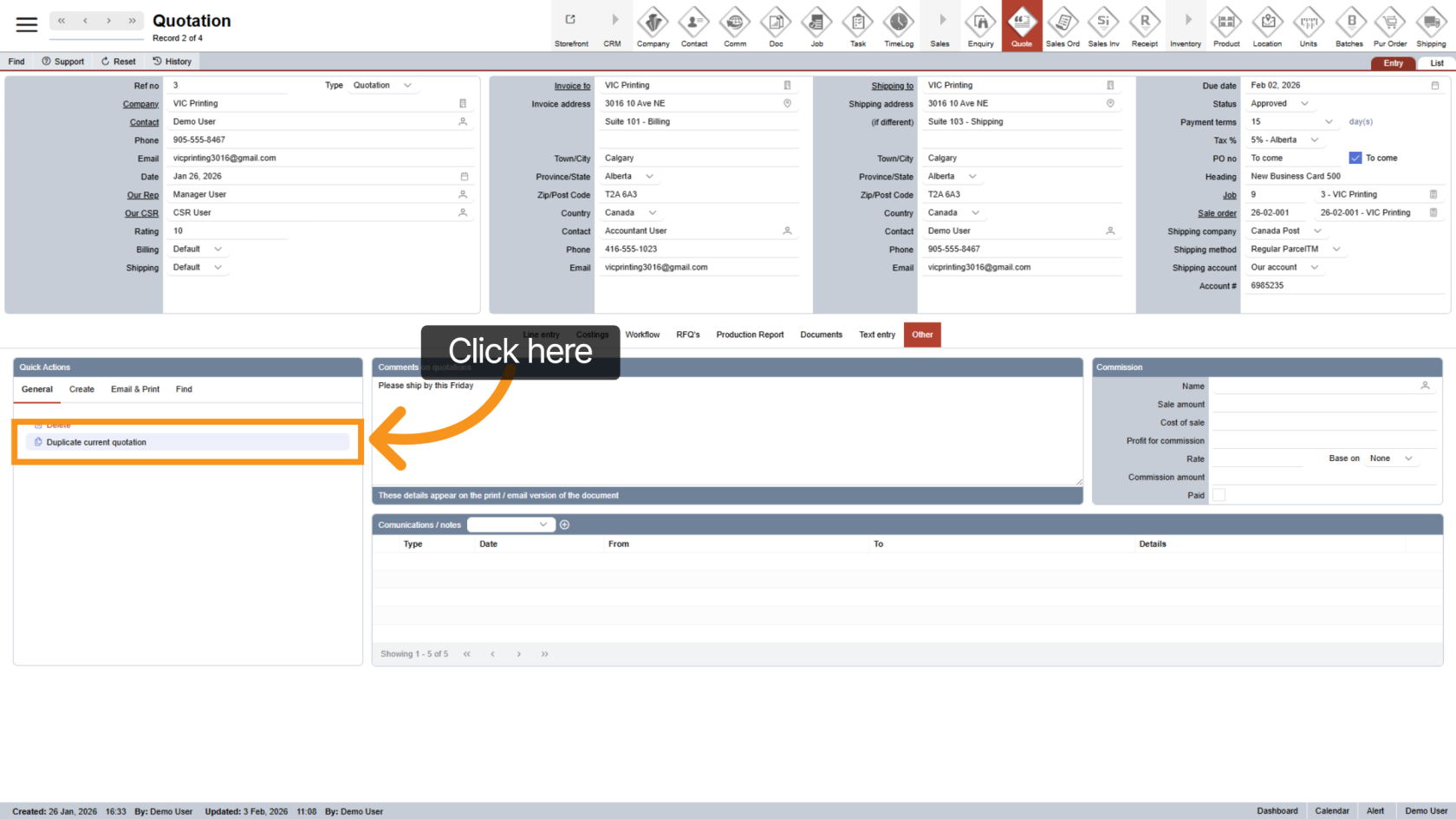 After duplication, WorkTraq will automatically open the new quotation, ready for editing or submission.