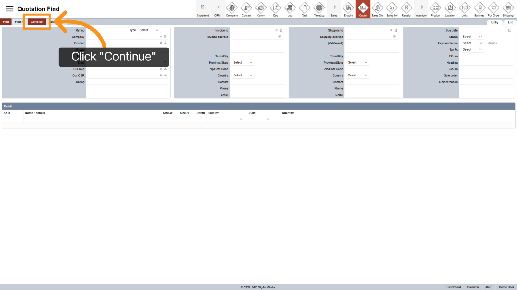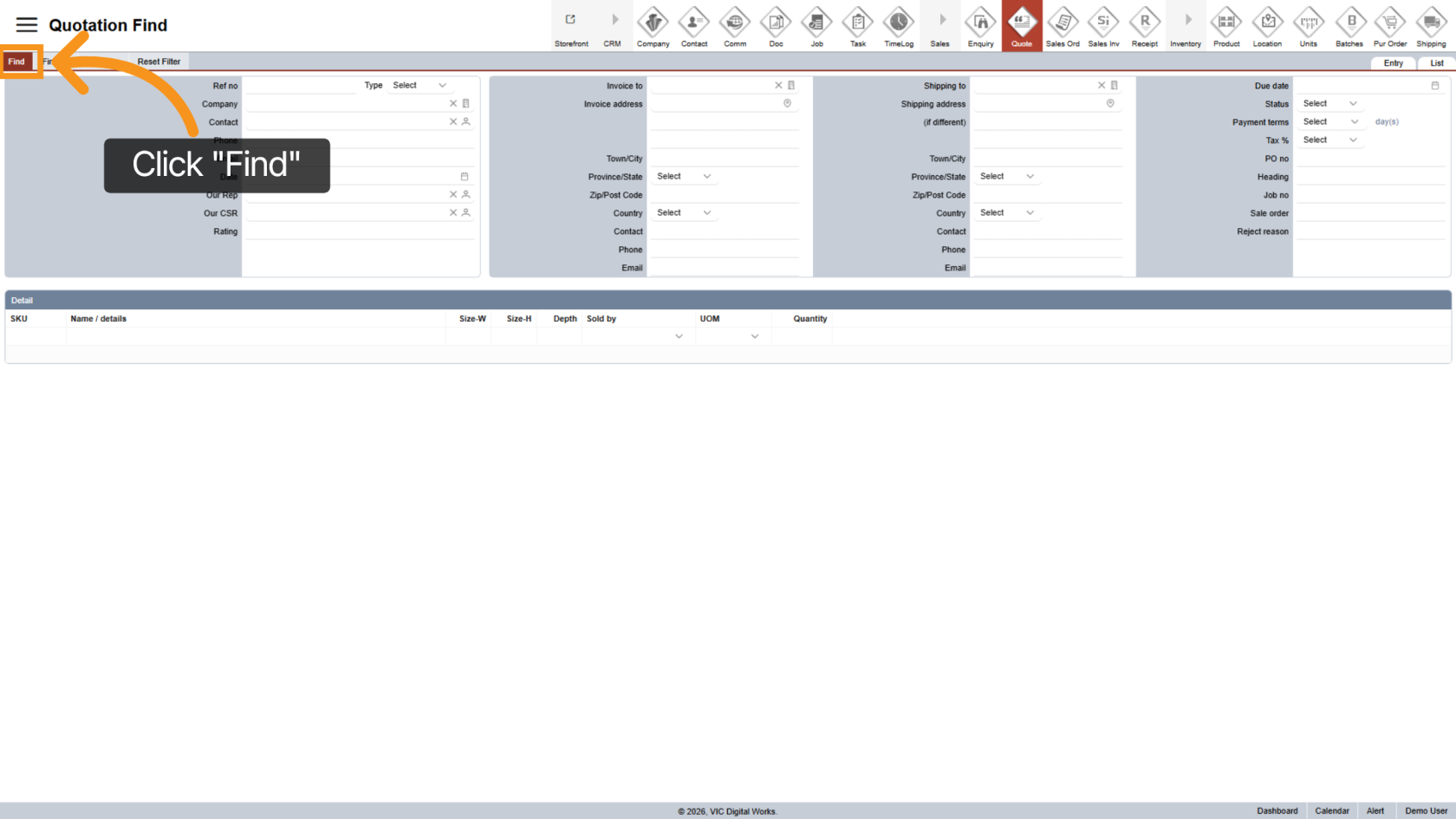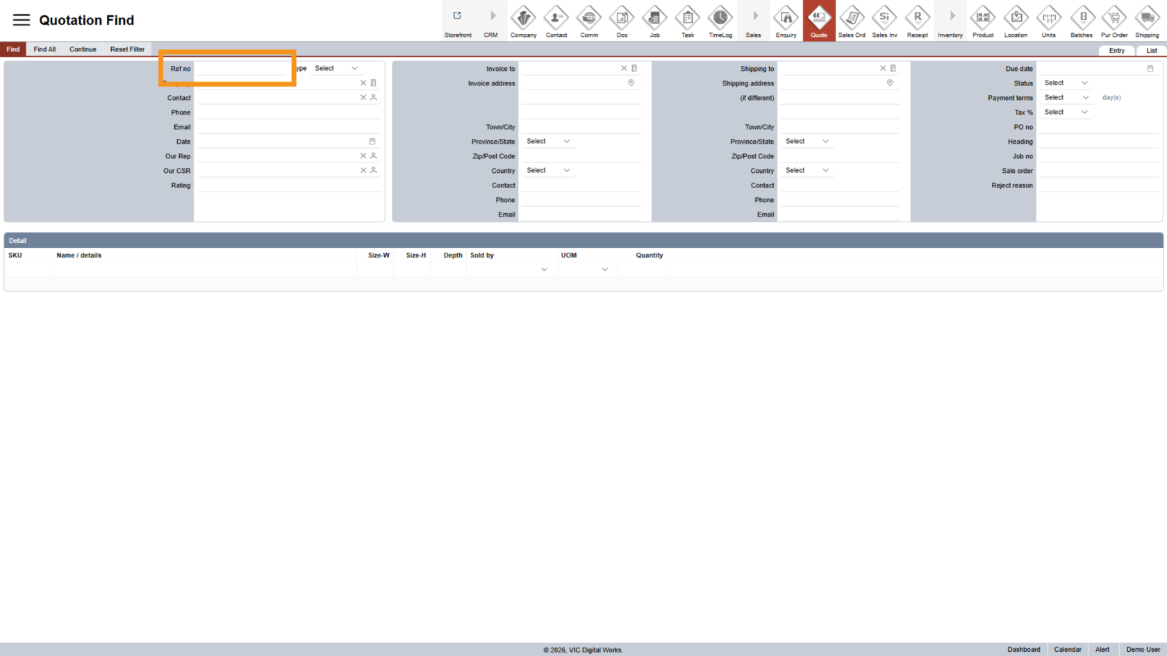 In the search field, enter the quotation reference number to locate the correct quotation.