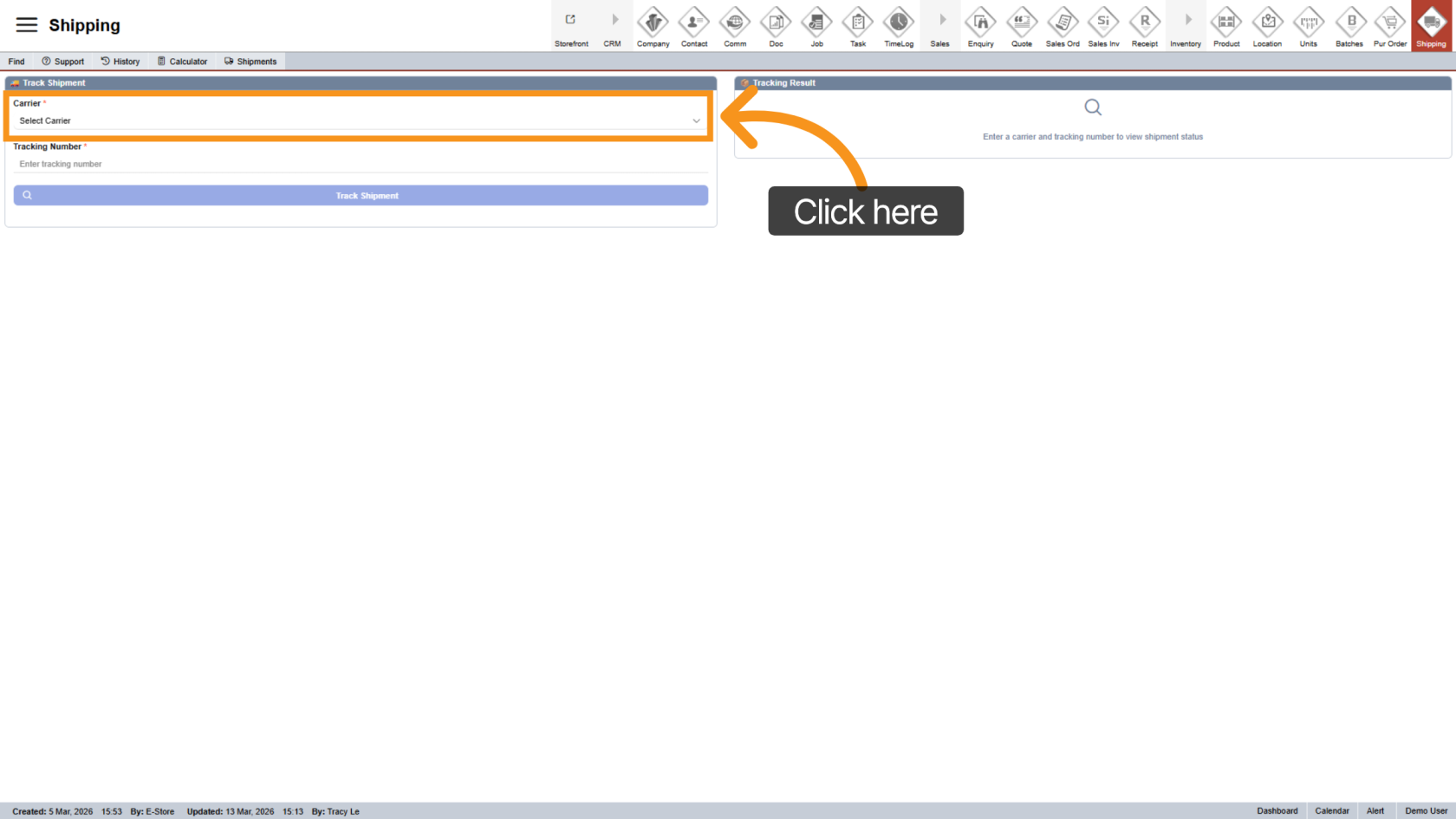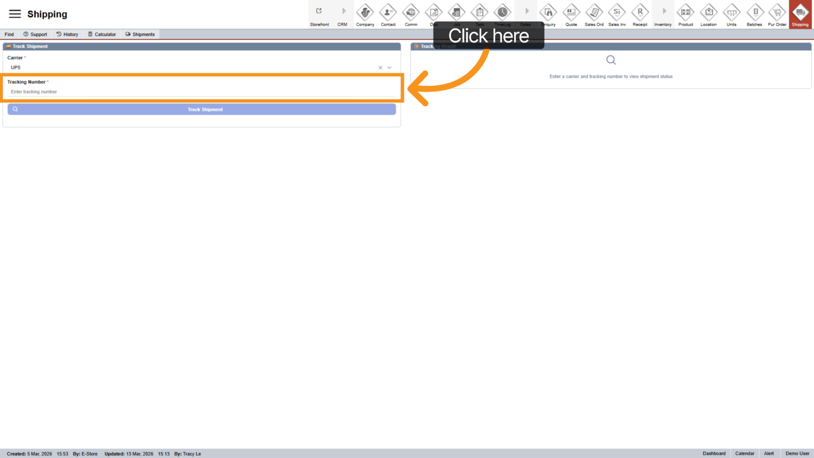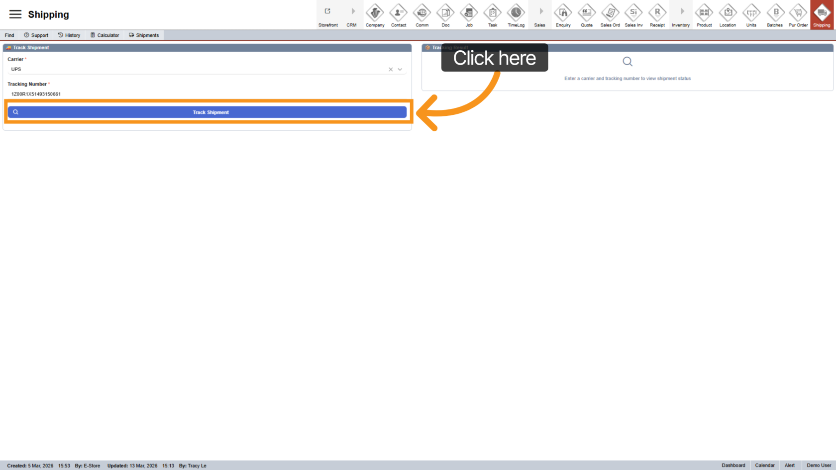Click "Track Shipment" to start the tracking process and view the shipment status.