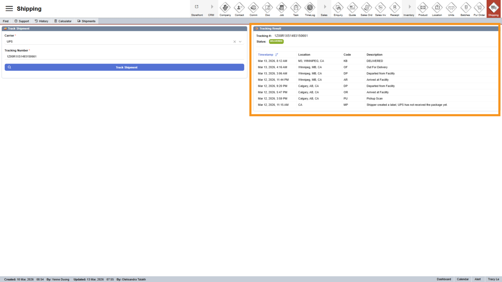 At this time, the system supports shipment tracking for UPS and Purolator only.