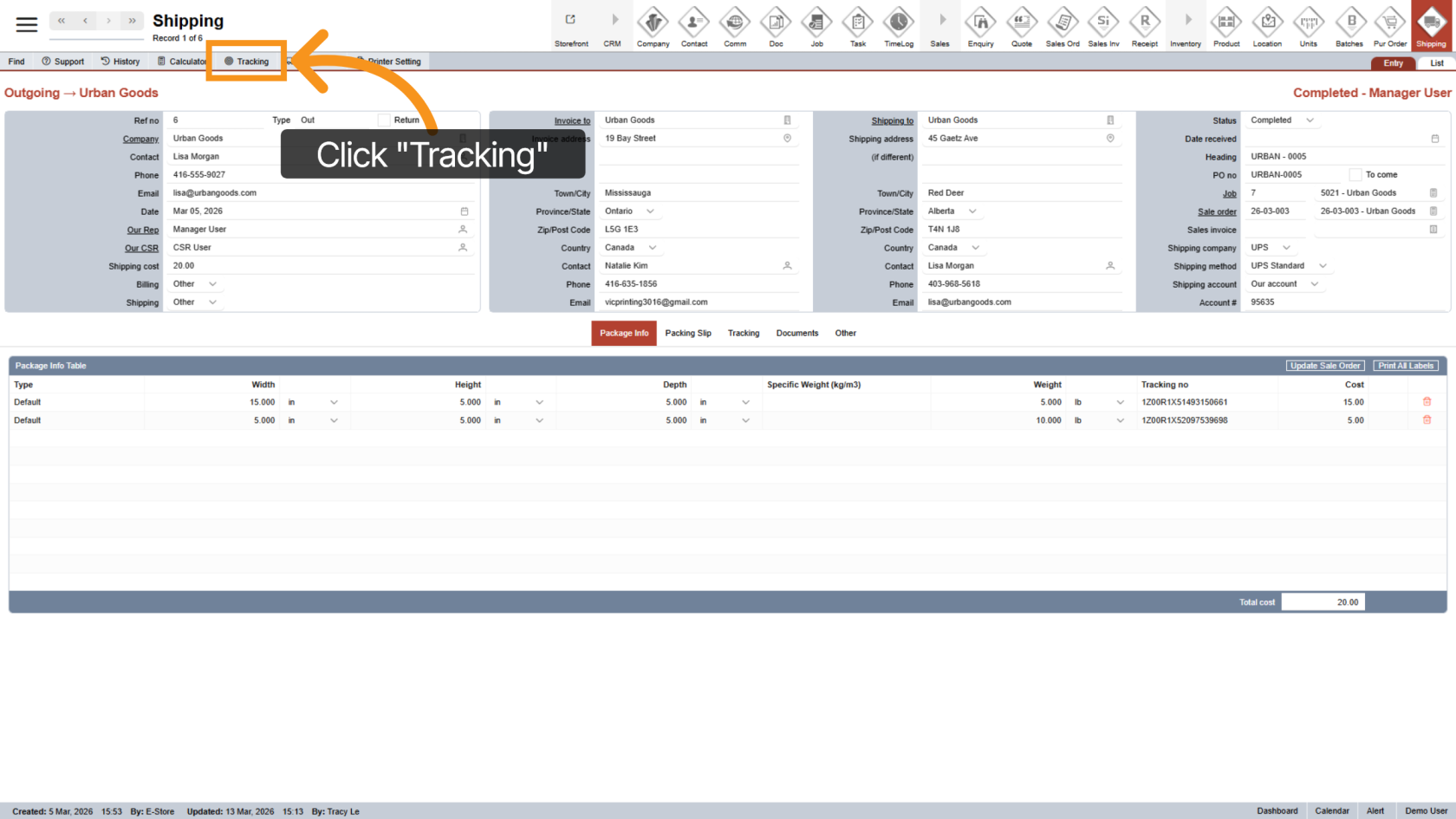 You have now successfully tracked a sales order shipment and manually tracked a package in the Worktraq app.